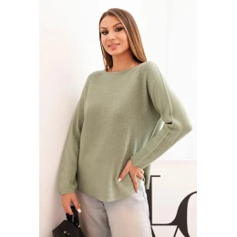 Svetr dámský z viskózy s dlouhým rukávem a kulatým výstřihem jasný khaki