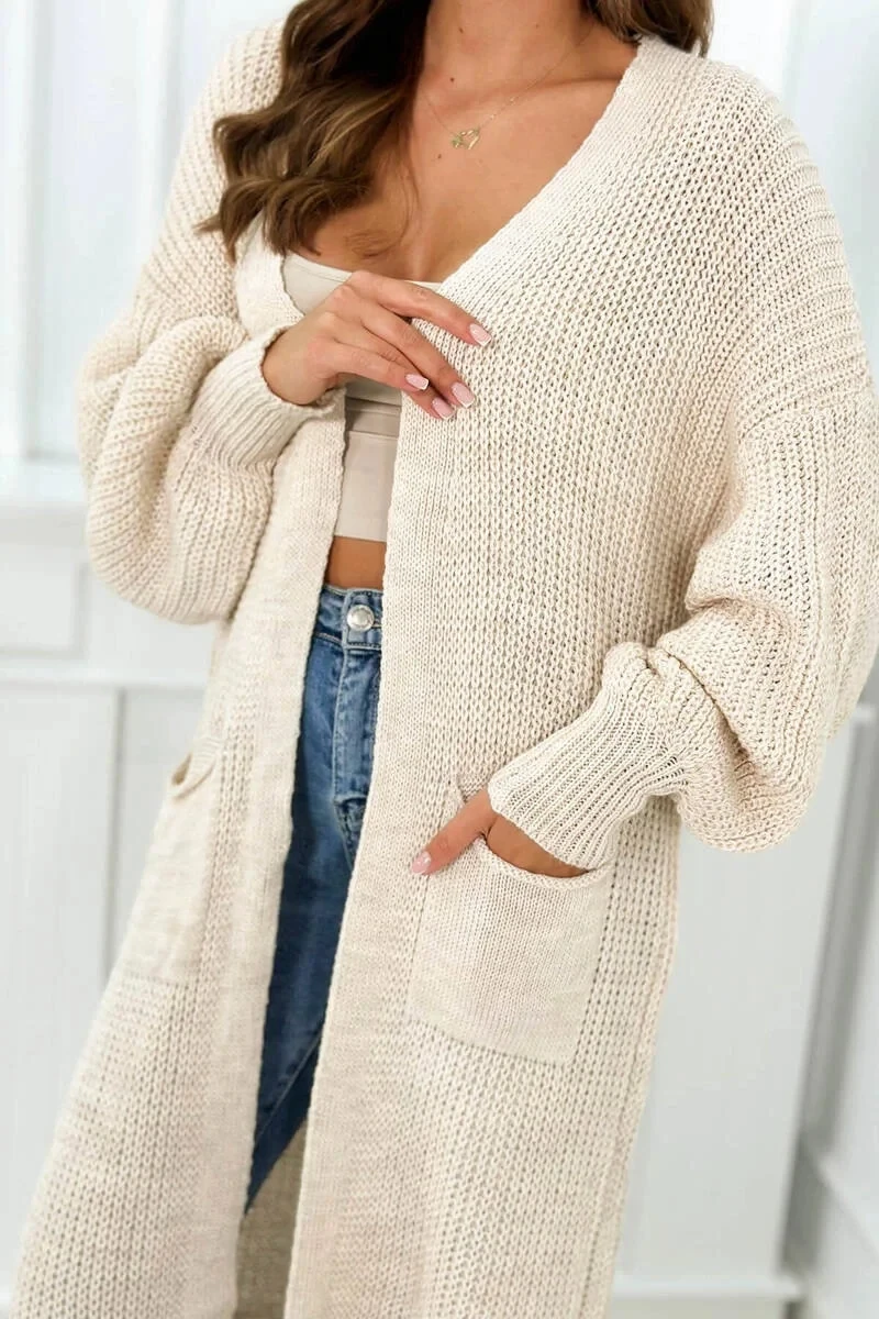 Dlouhý italský kardiganový svetr je esencí pohodlí a stylu. Tento svetr vyrobený z měkkých a na dotek příjemných vláken je dokonalým společníkem pro chladnější dny. Jeho prodloužený střih mu dodává eleganci při zachování ležérního charakteru. Svetr z Itálie je kombinací vynikajícího řemeslného zpracování a italského vkusu. Jeho sofistikované povrchové úpravy mu dodávají jedinečné kouzlo. Tento svetr je díky své délce vhodný jak na domácí nošení, tak jako prvek každodenního stylingu. Jeho univerzálnost znamená, že jej lze nosit jak jako lehký kabát v teplejších dnech, tak jako ochrannou vrstvu proti chladu pod silnější kabát. Dlouhý svetr je nejen oblečením, ale také výrazem italské elegance a důrazu na pohodlí, který jistě podtrhne individuální styl každého, kdo jej nosí. Velikost je univerzální a bude vhodná pro ženy velikosti M, L, XL.