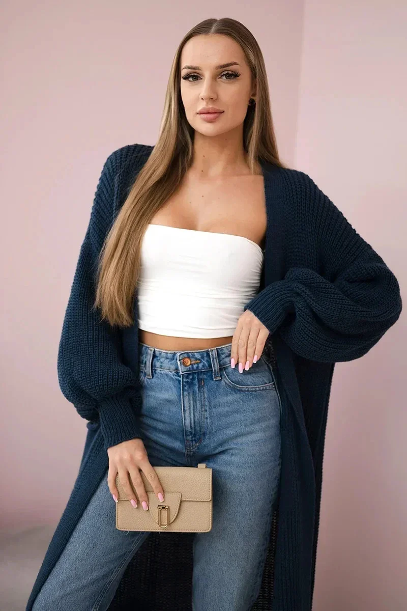 Svetr dlouhý kardigan model 21180677 denim - K-Fashion