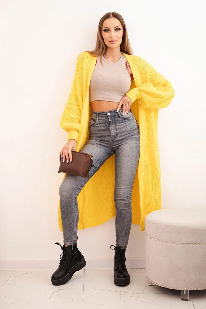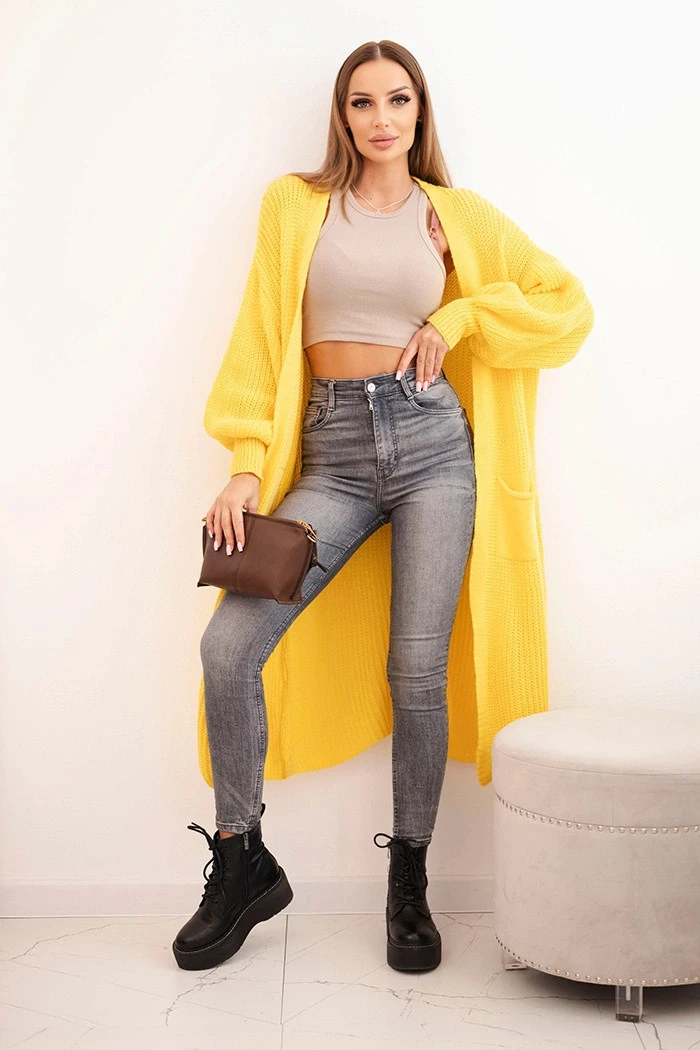 Svetr dlouhý kardigan tmavě žlutý