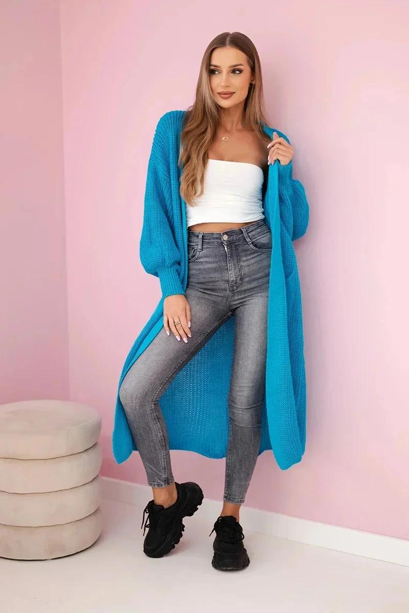 Svetr dlouhý kardigan tyrkys