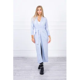 Svetr dlouhý svetr vázaný v pase modrý