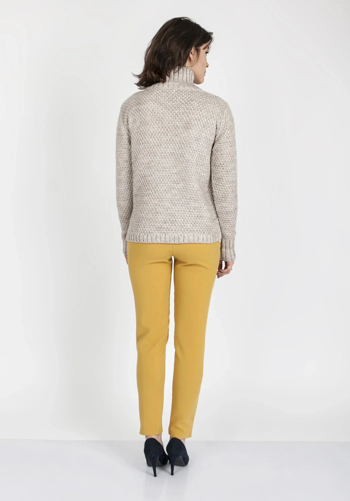 Elegantní svetr se stojáčkem, měkký, nekousavý, se zajímavou vazbou na přední straně. Rukávy s žebrovanými manžetami. Senzační, velmi ženský návrh z nejnovější podzimně-zimní kolekce polské značky MKM. Složení: 80 % polyamid, 20 % akryl.