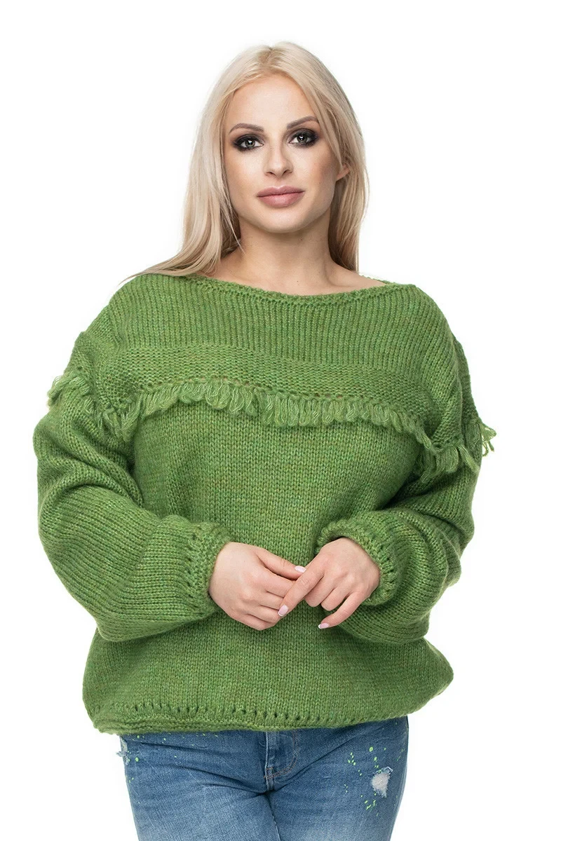 Svetr z měkké vlny. Ozdobné střapce na přední straně. Skvěle se hodí pro mnoho příležitostí.