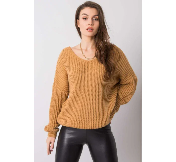 Velbloudí svetr s výstřihem na zádech. Skvěle se hodí pro mnoho příležitostí.