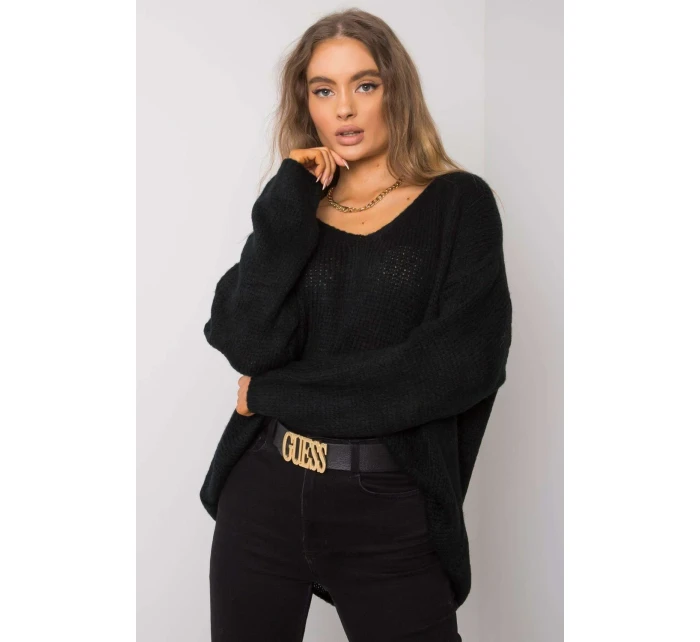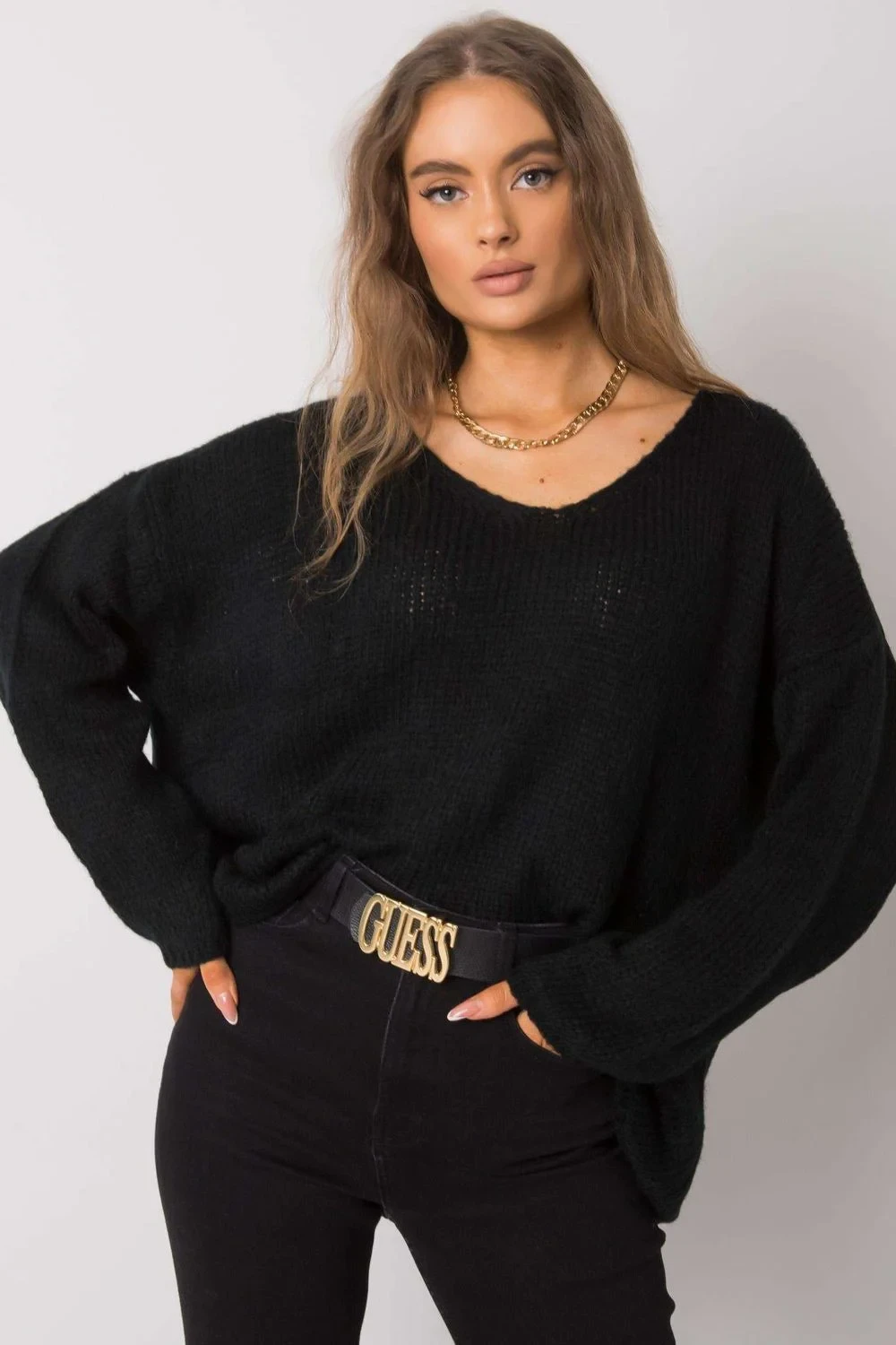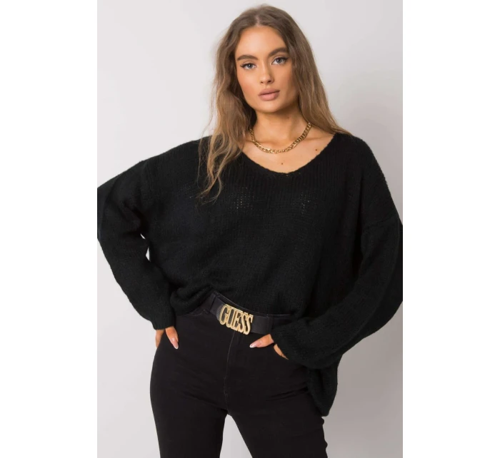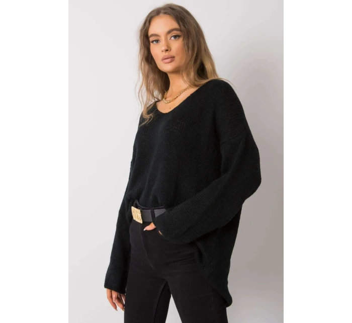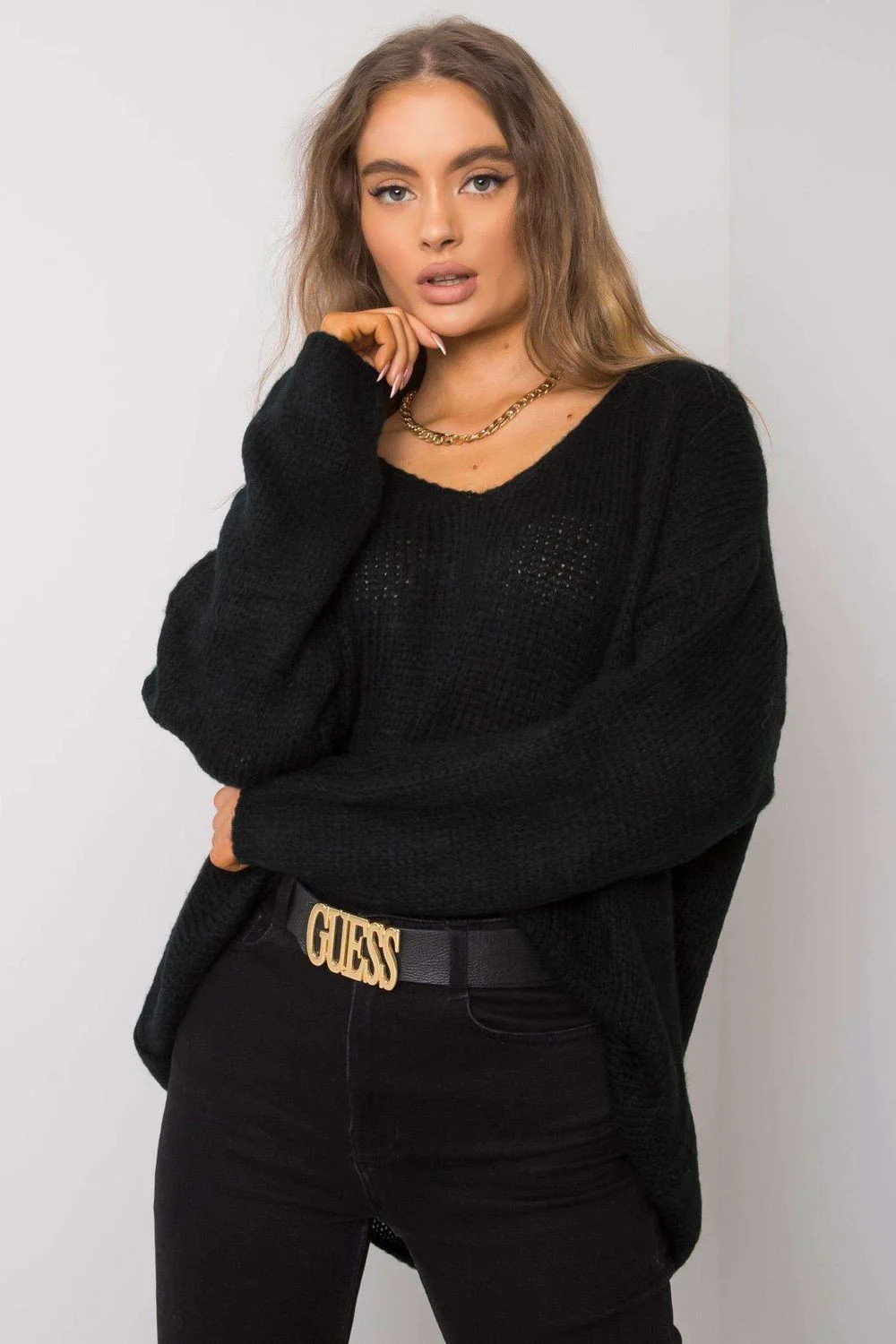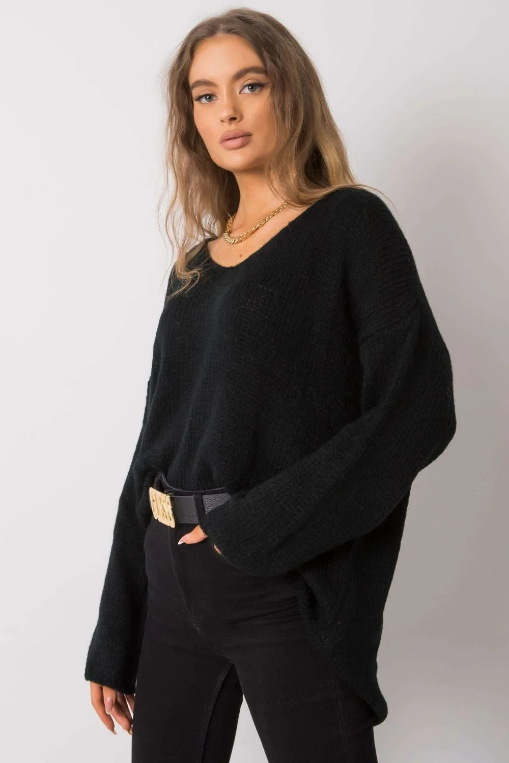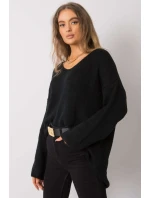 Dámský svetr s dlouhými rukávy a lodičkovým výstřihem. Na hřbetě rozříznutá ozdobná vazba.