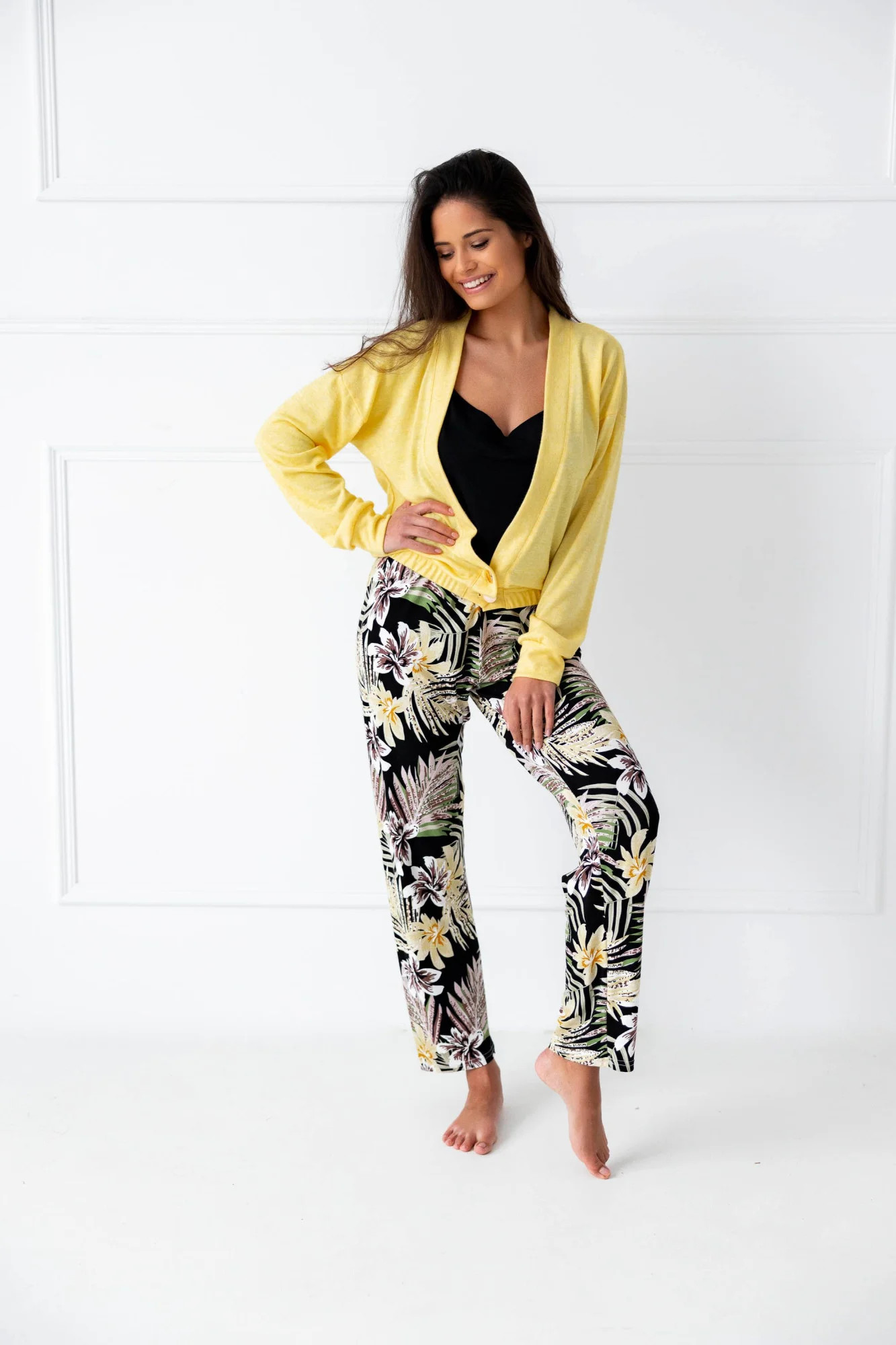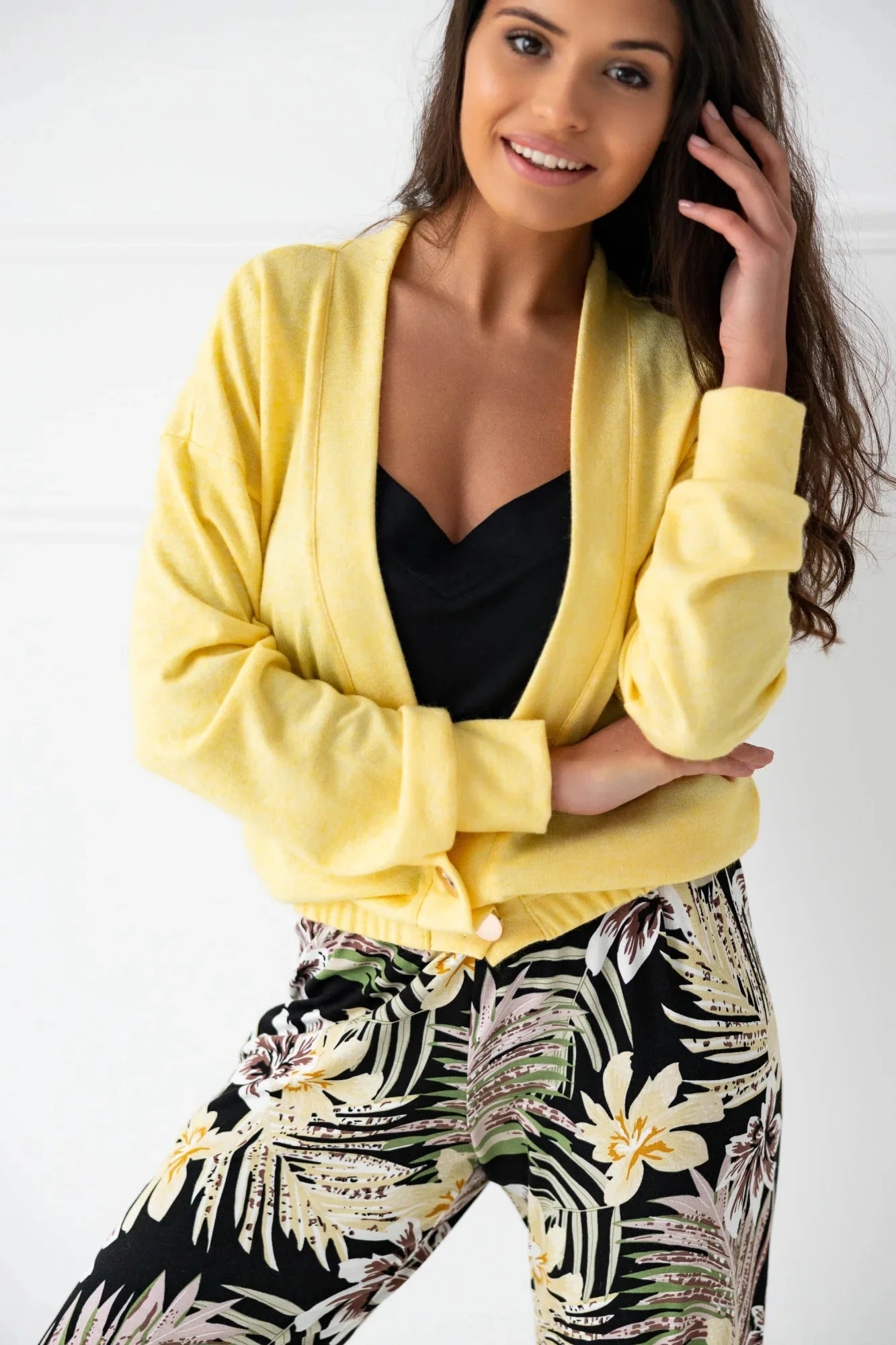Krásný hladký svetr se dvěma knoflíky ve spodní části. Krátké, do oblasti boků. Skvěle se hodí jako svetr i jako přehoz na postel, který doplňuje řadu pyžam Ana a Adelina od společnosti Sensis. Pohodlné, s dlouhým rukávem. Krásná slunečná barva. Složení: 50 % viskóza, 25 % polyester.