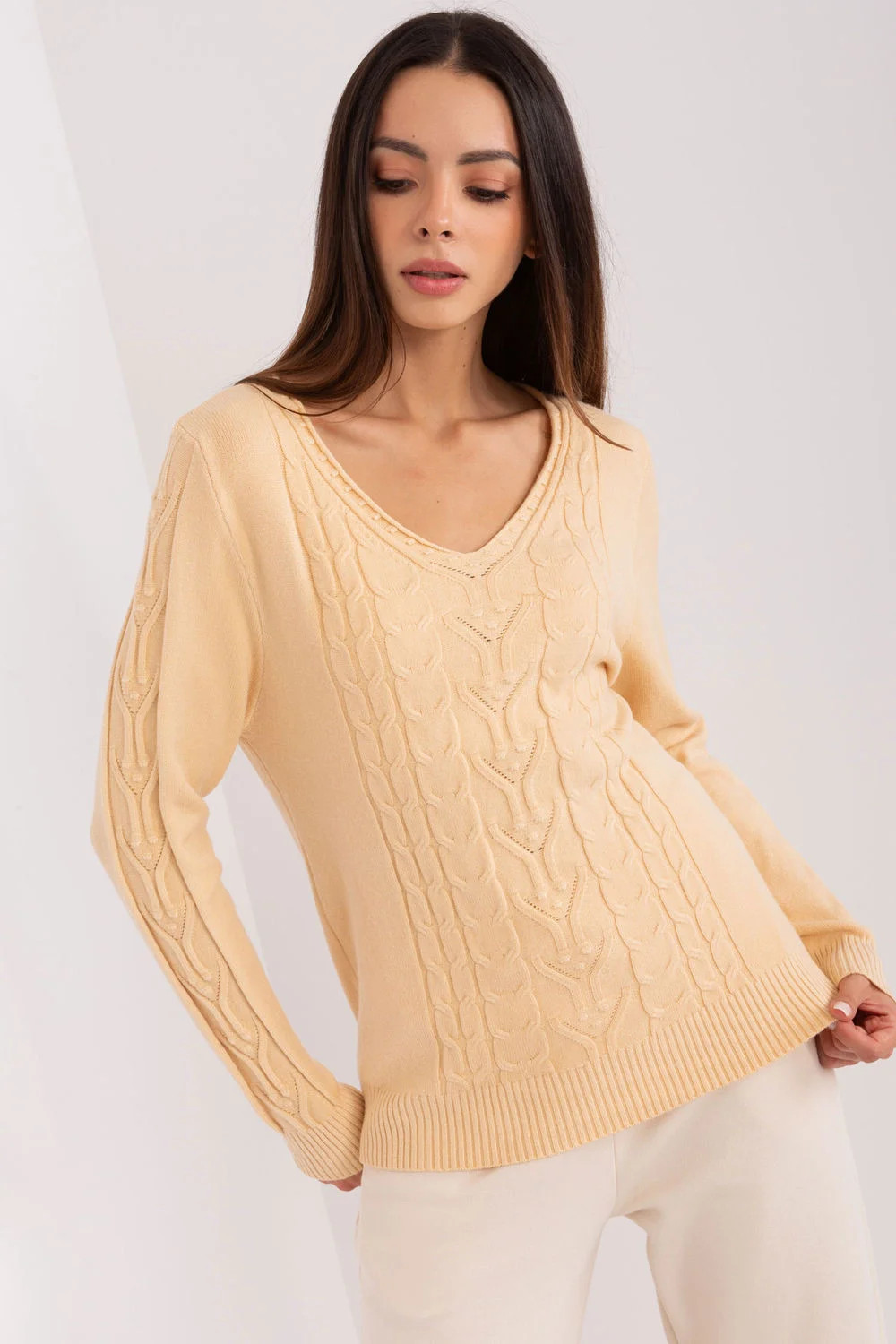 Tento dámský svetr je ideální volbou pro neformální každodenní příležitosti. Je vyroben z bavlny příjemné na dotek a zaručuje pohodlí a volnost pohybu. Svetr má standardní délku, která se hodí k mnoha stylům. Dlouhé rukávy a výstřih do V mu dodávají na eleganci a jsou vhodné pro různá roční období. Jednou z hlavních předností tohoto svetru je pestrá struktura látky, která mu dodává jedinečný charakter. Dominantní vzor, například jemné zdobení, mu navíc dodávají módní vzhled. Tento svetr se dobře kombinuje jak s džínami, tak se sukněmi a legínami, což vám umožní vytvářet různé looky. Ať už se chystáte na procházku, do práce nebo na setkání s přáteli, tento svetr dodá vašemu stylingu pohodlí a šarm.
