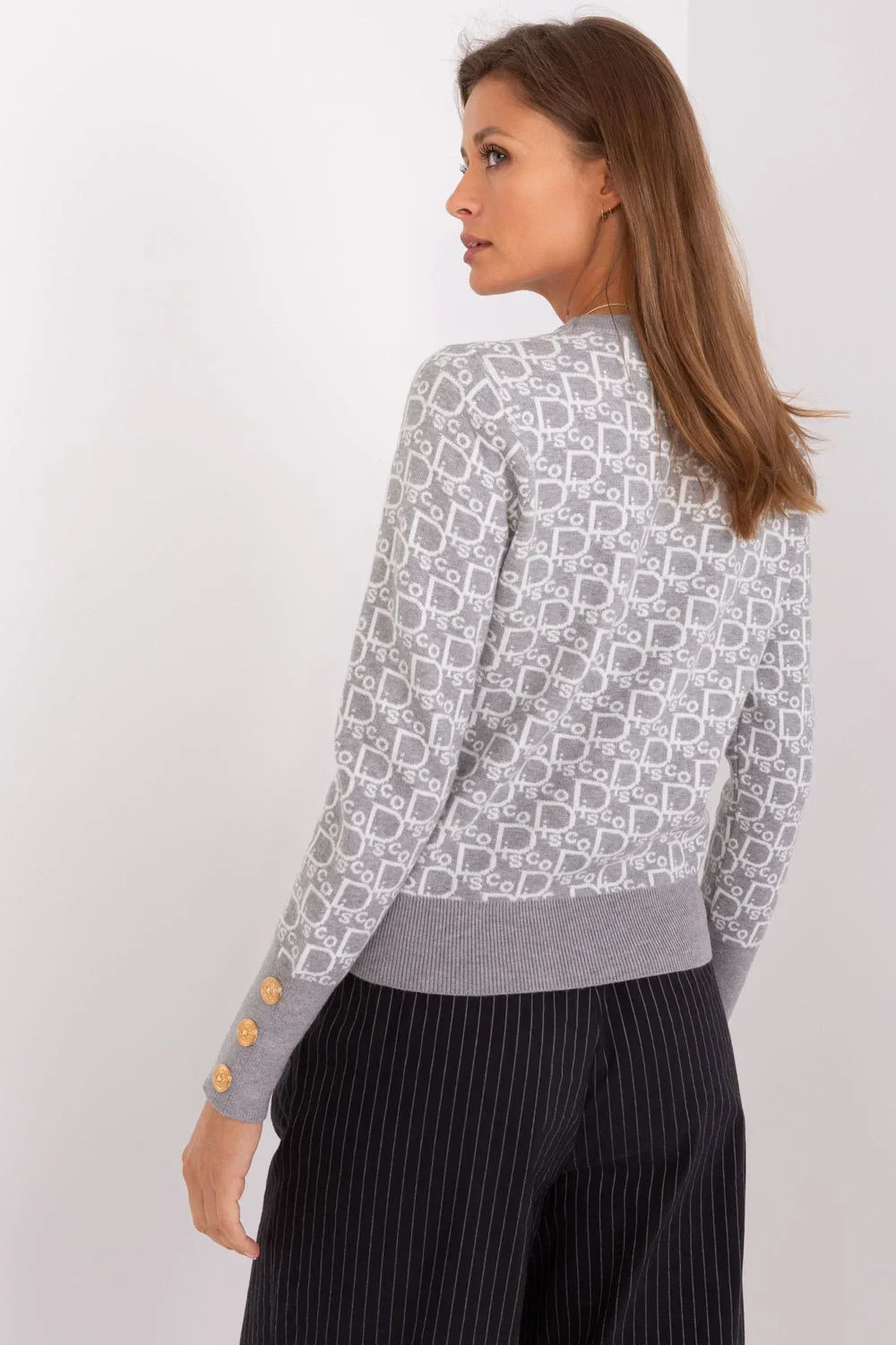 Tento svetr je jedinečnou volbou pro každého, kdo rád kombinuje pohodlí s osobitým stylem. Jeho kulatý výstřih mu dodává klasický vzhled, který se hodí k mnoha příležitostem. Dlouhý rukáv zaručuje teplo v chladnějších dnech. Dalším ozdobným prvkem jsou knoflíky na manžetách, které svetru dodávají elegantní nádech. Tento svetr se dodává ve standardní délce, díky které jej lze snadno kombinovat s různými kalhotami nebo sukněmi. Díky svému ležérnímu stylu je ideální pro každodenní vycházky, zatímco výrazný potisk mu dodává osobní nádech. Je to ideální volba pro každodenní nošení.