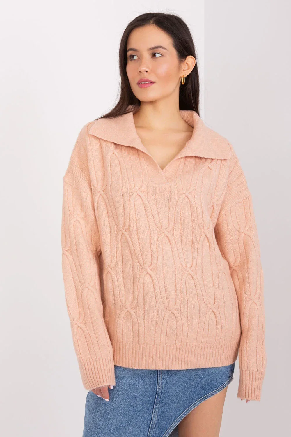 Tento dámský svetr je ideální volbou pro různé příležitosti, od každodenních situací až po dny v kanceláři. Je vyroben z akrylu příjemného na dotek a zaručuje pohodlné nošení. Pestrá struktura tkaniny mu dodává charakter, zatímco díky jemnému dominantnímu vzoru je elegantní, ale zároveň se hodí k ležérnímu stylu. Dlouhý rukáv zajišťuje teplo, zatímco standardní délka mu dodává univerzálnost. Límec dodává nádech třídy a elegance. Je to svetr, který můžete snadno kombinovat s mnoha různými styly, což vám umožní vypadat stylově a cítit se pohodlně.