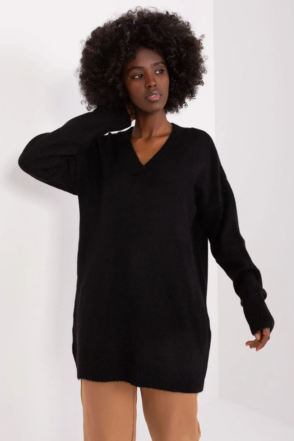 Tento svetr je esencí elegance a nadčasové třídy, která se vyznačuje moderním pojetím stylu. Tento svetr představuje klasický střih, který nikdy nevyjde z módy. Je ideální volbou pro ženy, které ocení nadčasovou eleganci. Výrazná hladká struktura tkaniny dodává svetru minimalistický vzhled. Je ideálním základem pro nejrůznější stylizace. Dominantním materiálem je vysoce kvalitní akryl, který zaručuje pohodlí, měkkost a odolnost a zároveň se snadno udržuje. Svetr má mírně prodlouženou délku, která mu dodává jemný, moderní nádech. Je ideální volbou pro ženy, které ocení volnost pohybu a stylové pohodlí. Dlouhý rukáv zaručuje ochranu před chladem a srdíčkový výstřih dodává svetru ženský nádech a jemně odhaluje krční část. Tento svetr je určen pro ženy, které chtějí do svého šatníku zavést klasický kousek s moderním nádechem. Skvěle se bude hodit jak pro každodenní stylizaci, tak pro formálnější příležitosti a podtrhne individuální vkus a eleganci ženy, která jej nosí. Akryl 80 %
