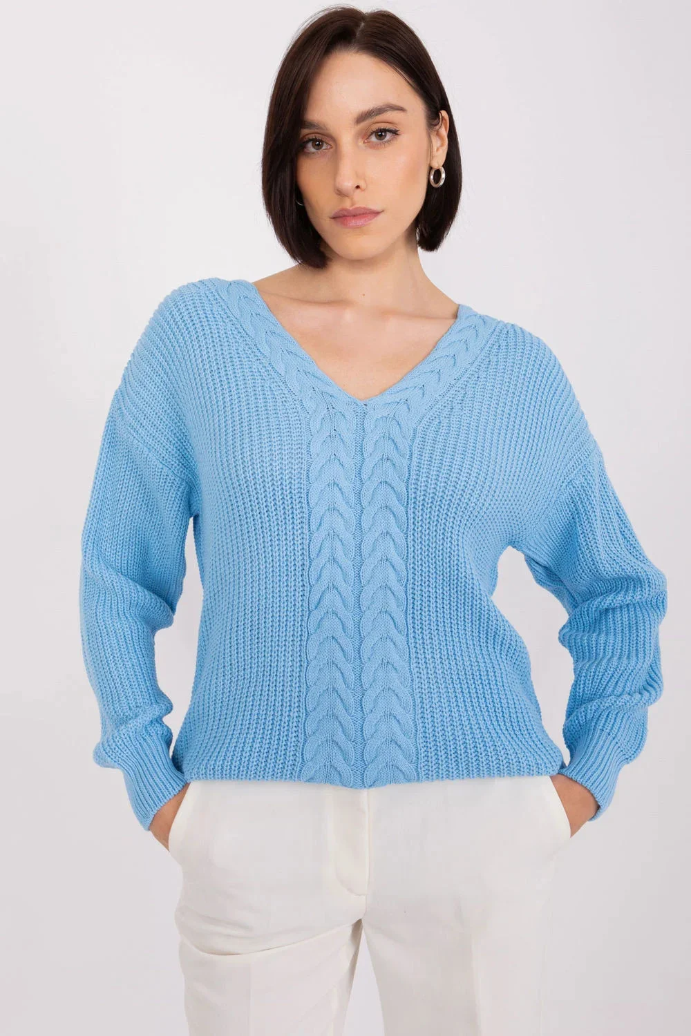 V našem dámském svetru jsme zkombinovali jednoduchost hladkého designu s pestrou strukturou látky a vytvořili tak jedinečnou nabídku pro ženy, které oceňují eleganci v každodenním stylu. Tkanina svetru překvapí svou rozmanitou strukturou, která mu dodává jemný charakter. Je to jemný dotek, díky kterému vyniknete z davu. Klasický výstřih do V je nejen elegantní, ale také zdůrazňuje jemnost dekoltu a dodává celému vzhledu na jemnosti. Díky dlouhému rukávu je svetr ideální pro chladnější dny a zároveň mu dodává klasický, univerzální nádech. Svetr je ideální volbou pro každodenní nošení do práce i na neformální setkání. Díky jeho jednoduchosti a eleganci jej snadno přizpůsobíte různým situacím. Použitým materiálem je akryl, který kombinuje hřejivost, lehkost a odolnost. Svetr je příjemný na dotek a snadno se udržuje. Svetr je k dispozici v univerzálních barvách, poskytuje dokonalý základ pro různé styly a lze jej snadno kombinovat s dalšími kousky ve vašem šatníku. S tímto svetrem můžete snadno a rychle vytvořit řadu zajímavých každodenních outfitů a podtrhnout tak svůj osobitý styl. Náš hladký svetr s texturou je určen pro ženy, které ocení jemnost detailů, aniž by se vzdaly pohodlí a elegance svého každodenního oblečení.