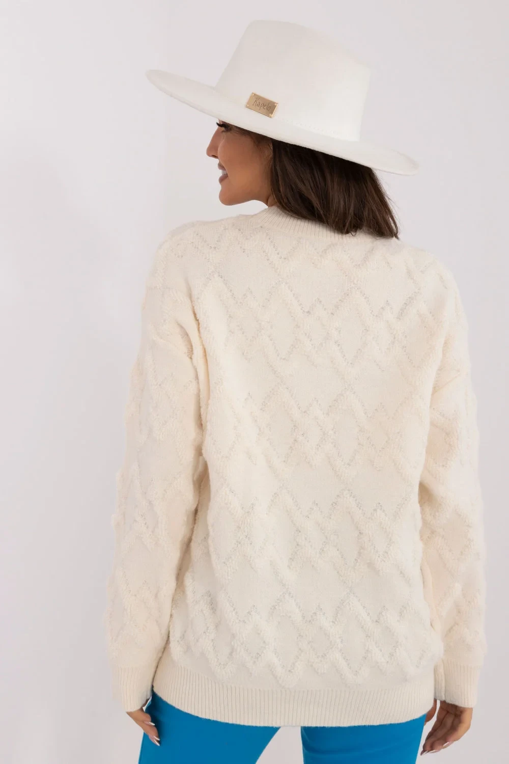 Dámský svetr v casual stylu, ideální na každodenní příležitosti. Vyznačuje se různorodou fakturou pletení, která mu dodává jemnou eleganci. Svetr má standardní délku a dlouhé rukávy, což zajišťuje pohodlné nošení po celý den. Kulatý výstřih zdůrazňuje klasický charakter modelu, který se skvěle hodí jak do práce, tak na běžné nošení.