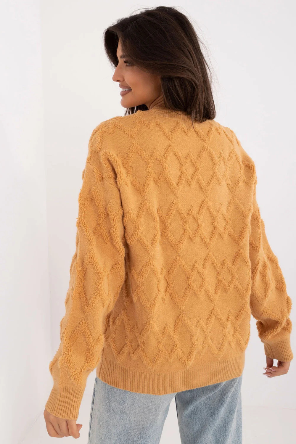 Dámský svetr v casual stylu, ideální na každodenní příležitosti. Vyznačuje se různorodou texturou pletení, která mu dodává jemnou eleganci. Svetr má standardní délku a dlouhé rukávy, což zajišťuje pohodlí nošení po celý den. Kulatý výstřih podtrhuje klasický charakter modelu, který se skvěle hodí jak do práce, tak do každodenního života.