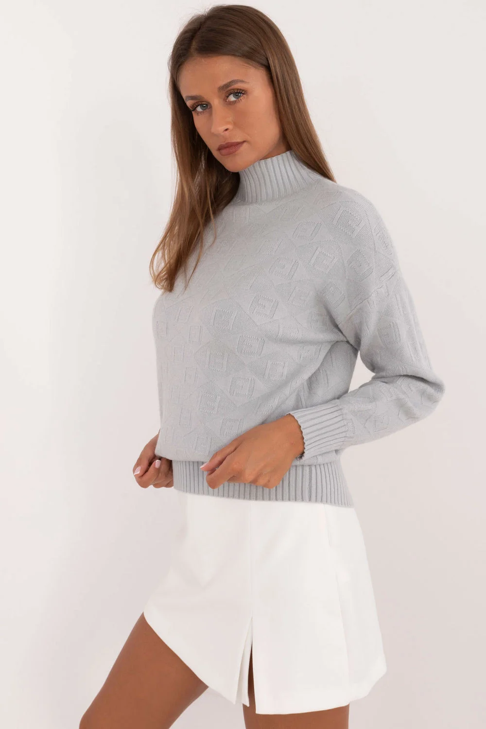 Ležérní svetr s polovičním rolákem, ideální pro každodenní nošení i do práce. Je vyroben ze směsi akrylu a polyesteru a zaručuje pohodlí a teplo. Různorodá textura tkaniny dodává svetru jedinečný nádech a odlišuje ho od klasických modelů. Svetr má standardní délku a dlouhé rukávy, takže je univerzální a ideální pro chladnější dny. Je skvělou volbou pro ženy, které ocení pohodlí v kombinaci s módním, ležérním stylem.