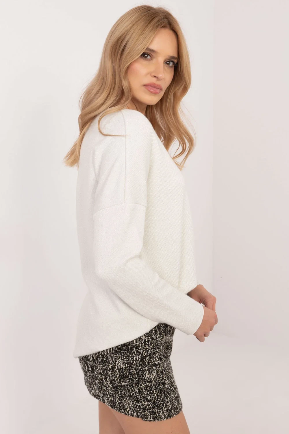 Elegantní dámský svetr s lesklou nití, ideální na každý den i do práce. Vyrobený z směsi viskózy a elastanu, poskytuje pohodlí a pružnost, zároveň jemně leskne, dodávající stylizaci eleganci. Různorodá struktura materiálu dělá svetr výjimečným subtilním vzorem, zdůrazňující eleganci a moderní charakter. Má standardní délku a dlouhé rukávy, co ho dělá skvělým doplňkem každého outfitu. Výstřih do "V" přidává ženskost a zvýrazňuje postavu, vytvářející klasický, ale zároveň stylový vzhled.