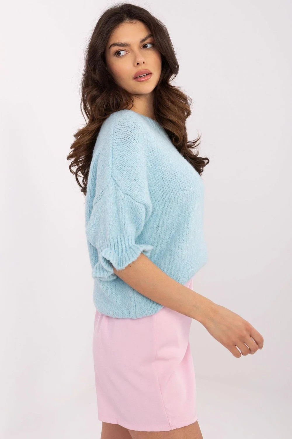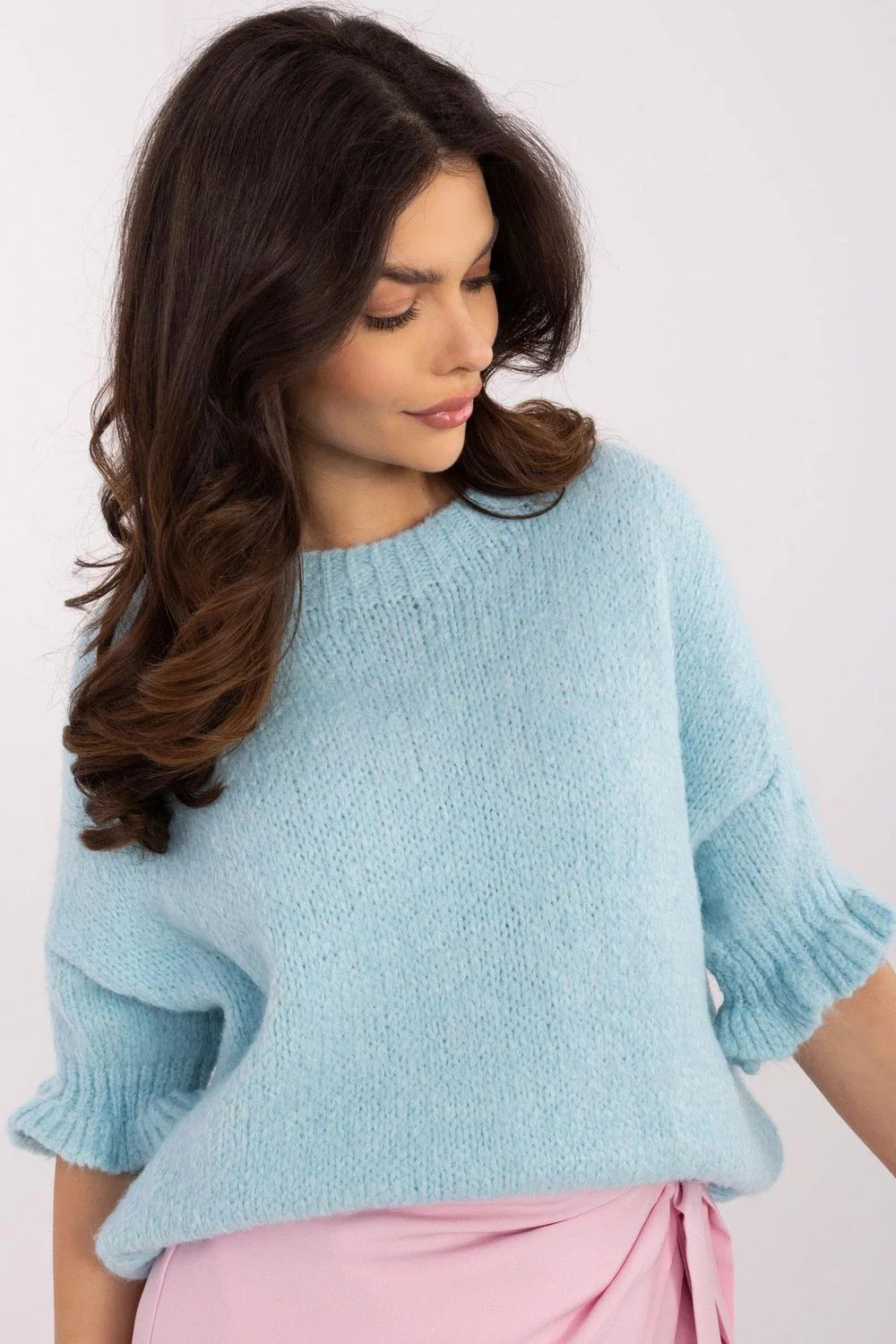 Stylový dámský svetr s casual charakterem je skvělou volbou na každý den i do práce. Vyrobený z měkké směsi akrylu, vlny, polyamidu a viskózy, poskytuje teplo a pohodlí při nošení. Má klasickou standardní délku a elegantní kulatý výstřih, který decentně zdůrazňuje krk. Rukávy délky 3/4 jsou zdobeny jemnými volány, které celku dodávají ženský šarm. Hladká struktura materiálu činí svetr univerzálním a snadno kombinovatelným, ideální jak k elegantním kalhotám, tak ke každodenním džínům.