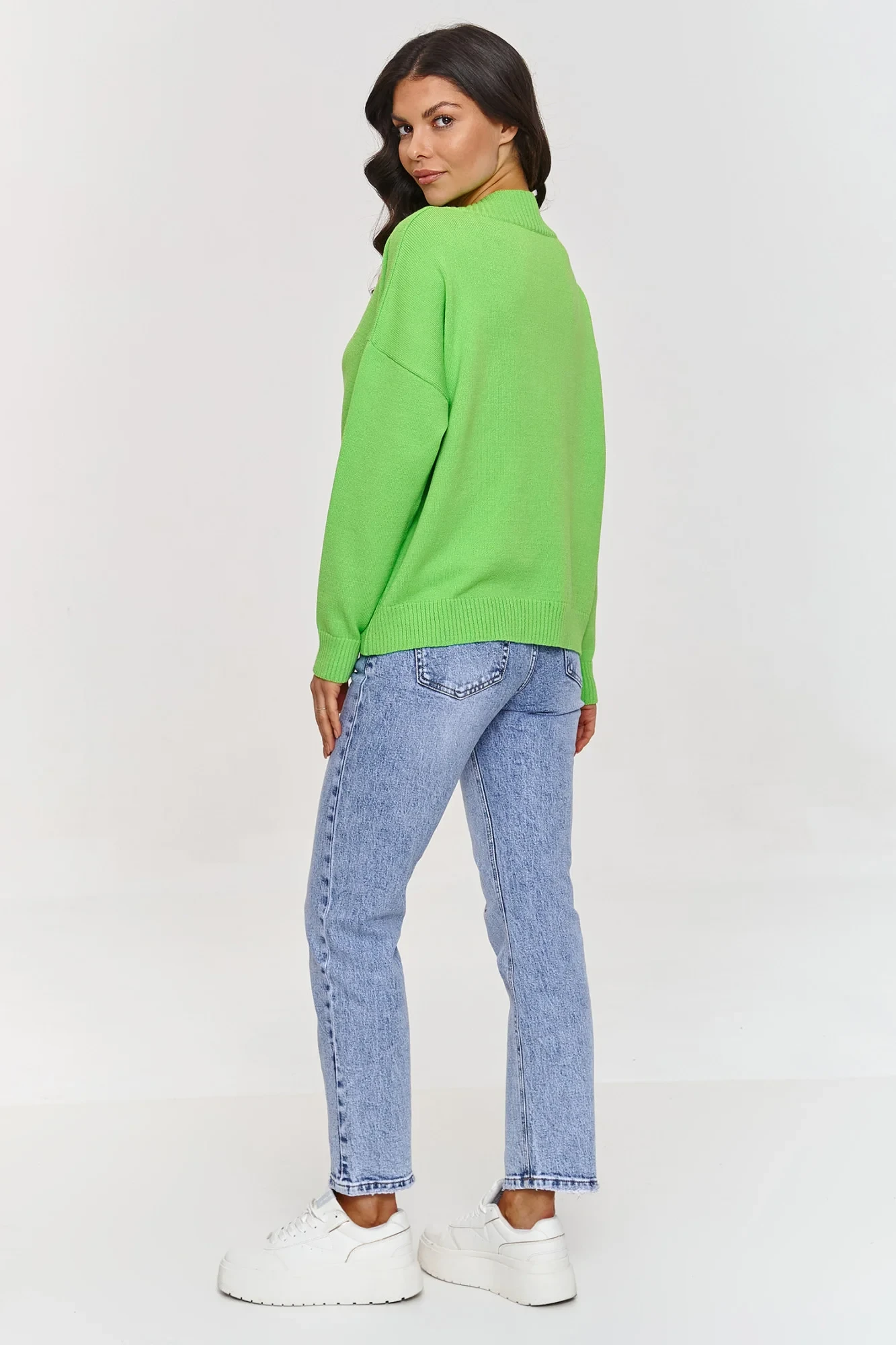 Tento základní svetr je skvělou volbou pro ty, kteří hledají nadčasový oděv, který spojuje eleganci s pohodlím. Vyrobený z vysoce kvalitní viskózy s přídavkem PBT, zaručuje nejen pohodlí nošení, ale také vynikající trvanlivost a odolnost proti mačkání. Výstřih ve tvaru V decentně zdůrazňuje krk, celku dodává lehký a elegantní charakter, volný střih a dlouhé rukávy zase zajišťují, že se jedná o pohodlný kousek oblečení. Pružné lemy na rukávech a dole dodávají moderní vzhled a zajišťují, že svetr dobře drží tvar. Viskóza je materiál, který je příjemný k pokožce, prodyšný a jemný na dotek, ideální na každé roční období. PBT (polybutylentereftalát) je syntetické vlákno, které zvyšuje elasticitu materiálu, zlepšuje jeho odolnost proti vytahování a mačkání. Díky PBT si svetr zachovává svůj tvar déle a je snadno udržovatelný. Díky kombinaci elegantního výstřihu ve tvaru V a elastického materiálu je svetr velmi všestranný. Můžete ho zkombinovat s džíny, sukní nebo elegantními kalhotami, vytvářejícími ležérní nebo formální styly.