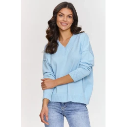Tento základní svetr je skvělou volbou pro ty, kteří hledají nadčasové oblečení, které kombinuje eleganci s pohodlím. Vyrobený z vysoce kvalitní viskózy s přídavkem PBT, poskytuje nejen pohodlí nošení, ale také vynikající trvanlivost a odolnost proti mačkání. Výstřih V decentně zdůrazňuje krk, dodává celku lehký a elegantní charakter, volný střih a dlouhé rukávy zase zajišťují, že se jedná o pohodlný kousek oblečení. Lemování na rukávech a dole přidává moderní vzhled a zajišťuje, že svetr dobře drží tvar. Viskóza je materiál, který je šetrný k pokožce, prodyšný a jemný na dotek, ideální na každou roční dobu. Na druhou stranu PBT (polyethylentereftalát) je syntetické vlákno, které zvyšuje pružnost materiálu, zlepšuje jeho odolnost proti roztažení a mačkání. Díky PBT si svetr udržuje svůj tvar déle a je snadno udržovatelný. Díky kombinaci elegantního výstřihu V a elastického materiálu je svetr velmi všestranný. Můžete ho zkombinovat s džíny, sukní nebo elegantními kalhotami, vytvářející tak neformální nebo formální stylizace.