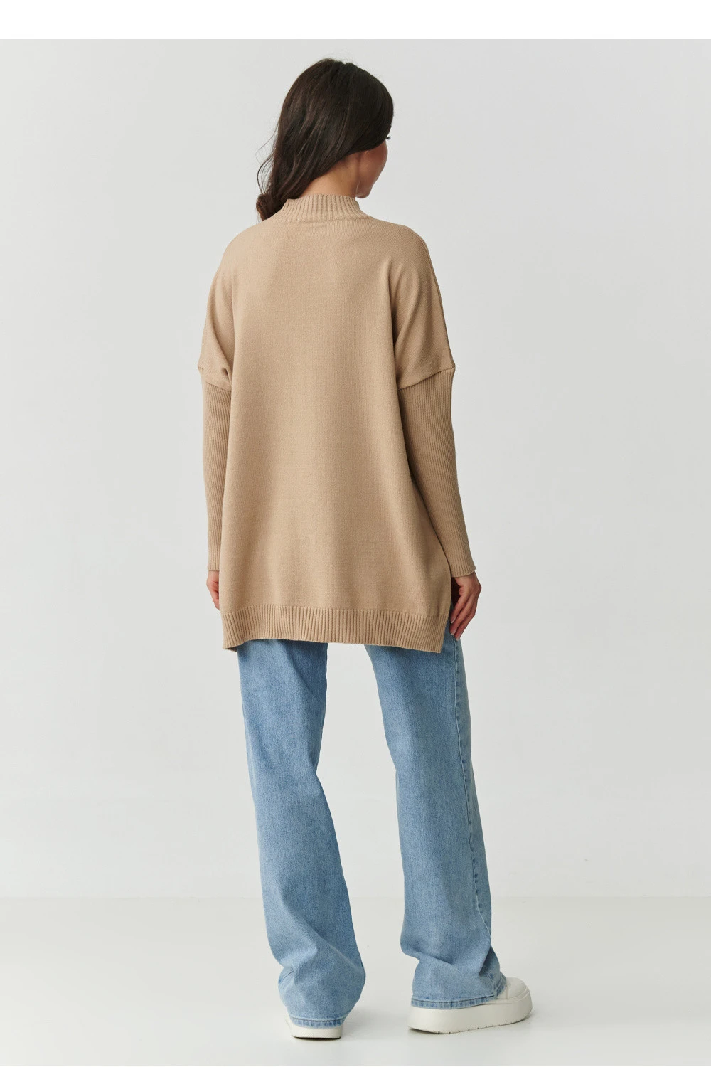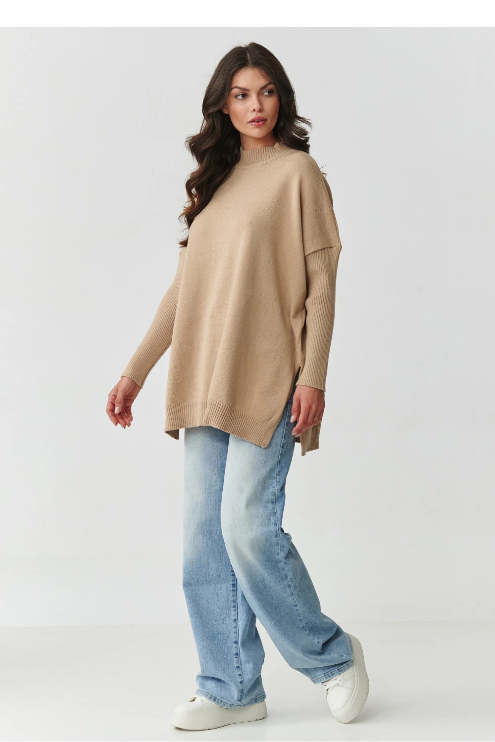 Sveter dámský oversize s převahou viskózy je kvintesencí pohodlí a ženské elegance v každodenním provedení. Měkký, jemný materiál obklopuje tělo jako druhá kůže, poskytující pohodlí po celý den bez ohledu na příležitost. Díky oversize střihu a jemným rozparkům po stranách se svetr krásně skládá na postavě, dodávající jí lehkost a volnost. Pólovkový výstřih nejen zdůrazňuje krk, ale také dodává celku moderní, rafinovaný charakter. Je to ideální nabídka pro ženy, které si cení spojení jednoduchosti a stylu, skvěle ladí jak s džíny, tak s elegantními kalhotami nebo legíny. Tento model se stane tvým oblíbeným společníkem chladnějších dnů, obklopující tě měkkostí a jemnou elegancí.