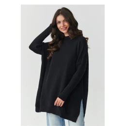 Sveter dámský oversize s převahou viskózy je kvintesencí pohodlí a ženské elegance v každodenním podání. Měkký, jemný materiál obklopuje tělo jako druhá kůže, poskytující pohodlí po celý den bez ohledu na příležitost. Díky oversize střihu a jemným rozparkům po bocích se svetr krásně usadí na postavě, dodávající jí lehkost a volnost. Polo rolák nejen zdůrazňuje krk, ale také dodává celku moderní, rafinovaný charakter. Je to ideální volba pro ženy, které si cení spojení jednoduchosti a stylu, skvěle ladí jak s džíny, tak s elegantními kalhotami nebo legíny. Tento model se stane vaším oblíbeným společníkem chladnějších dní, obepínající vás jemností a subtilní elegancí.