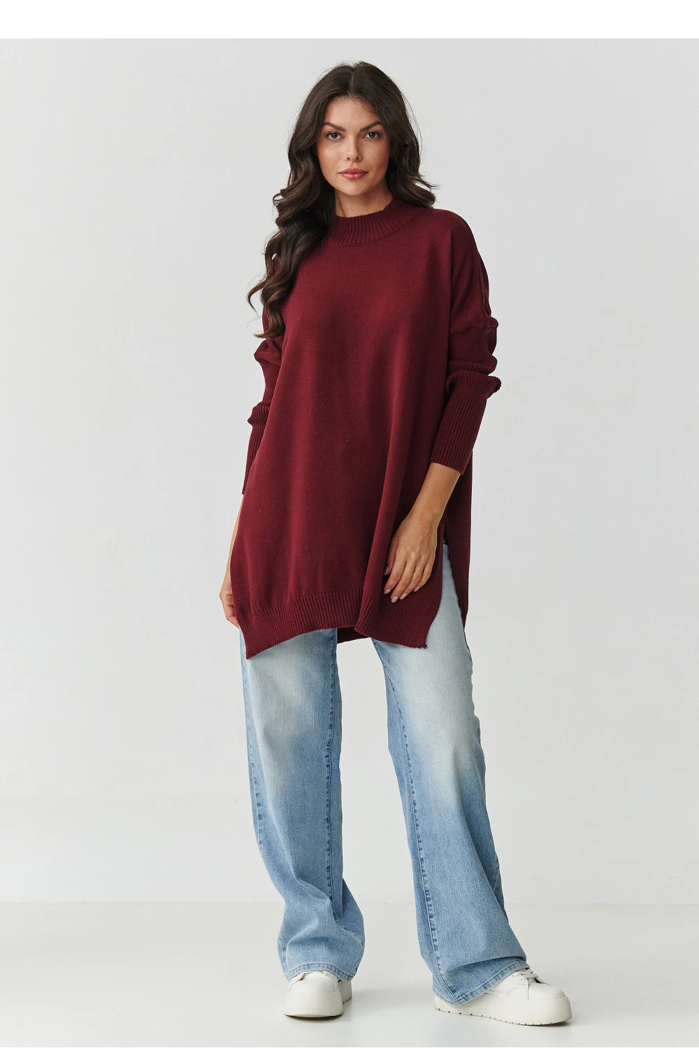 Sveter dámský oversize s převahou viskózy je kvintesencí pohodlí a ženské elegance v každodenním provedení. Měkký, jemný materiál obklopuje tělo jako druhá kůže, poskytující pohodlí po celý den bez ohledu na příležitost. Díky oversize střihu a jemným rozparkům po stranách se svetr krásně skládá na postavě, dodávající jí lehkost a volnost. Půlkárovník nejen zdůrazňuje krk, ale také dodává celku moderní, rafinovaný charakter. Je to ideální volba pro ženy, které oceňují kombinaci jednoduchosti a stylu, skvěle se hodí jak k džínům, tak k elegantním kalhotám nebo legínám. Tento model se stane tvým oblíbeným společníkem chladnějších dnů, obklopující tě jemností a subtilní elegancí.