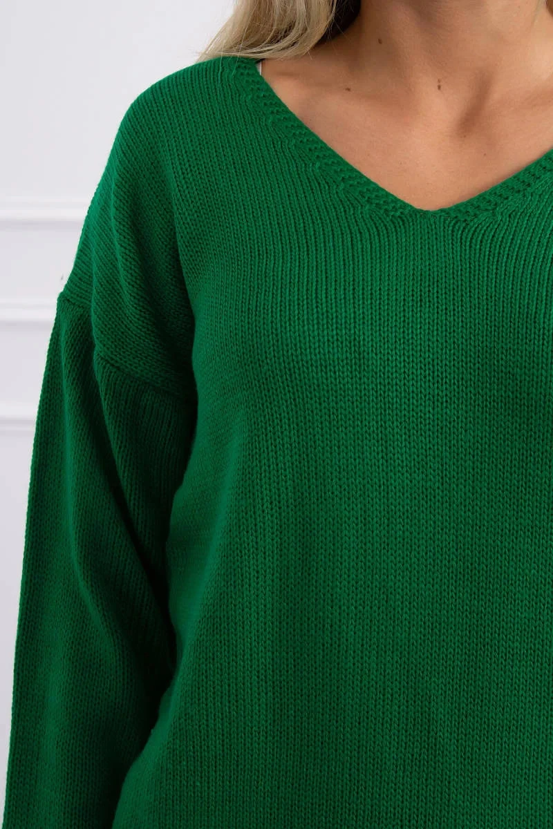 Svetr model 21764628 s výstřihem do V zelený - Kesi