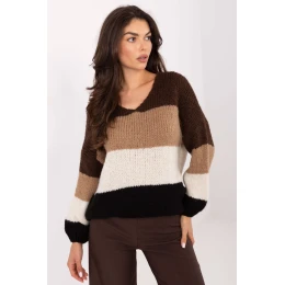 Svetrový oversized svetr v pruhovaném stylu je módní volbou v casual stylu, ideální jak na každý den, tak do práce. Vyrobený z kombinace akrylu, vlny, viskózy a polyamidu, je měkký, příjemný na dotek a pohodlný na nošení. Volný, oversized střih poskytuje volnost pohybu a moderní vzhled. Pruhovaný vzor dodává energii a svěžest, skvěle ladí s každodenními outfitmi. Standardní délka a dlouhý rukáv dělají svetr praktickým a pohodlným. Výstřih do šípku zjemňuje krk a zdůrazňuje ženskou siluetu. Jedná se o univerzální model, který skvěle ladí s džínami, sukní nebo elegantními kalhotami, dodávající lehkost a uvolněný charakter každému outfitu.