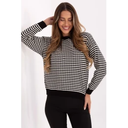 Stylový a pohodlný dámský svetr s ležérním charakterem, ideální na každý den. Vyznačuje se pruhovaným vzorem, který mu dodává moderní a nadčasový vzhled. Vyrobený z vysoce kvalitní směsi viskózy, polyamidu a PBT, poskytuje pohodlí nošení, měkkost a odolnost materiálu. Model s standardní délkou, dlouhým rukávem a kulatým výstřihem se skvěle hodí do každodenních stylizací jak k džínám, tak ke sukní. Univerzální volba pro ženy, které ocení pohodlí a styl v jednom.