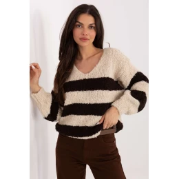 Sveter dámský oversized je ideální volbou pro každodenní outfity s ležérním charakterem. Volný střih poskytuje plnou volnost pohybu a pohodlí při nošení, standardní délka zase skvěle ladí jak s kalhotami, tak s sukni. Model se vyznačuje dominantním pruhovaným vzorem, který mu dodává lehkost a módní akcent. Dlouhý rukáv a výstřih do V zdůrazňují ženský styl a zároveň zaručují pohodlí a univerzálnost. Sveter je vyroben z kvalitní směsi materiálů: akrylu, alpaky, vlny a polyesteru, díky čemuž je měkký, příjemný na dotek a dostatečně teplý. Model nemá zapínání, obléká se přes hlavu, což zdůrazňuje jeho volný, oversizedový charakter. Je to skvělá volba na každodenní příležitosti, kdy chcete vypadat stylově a zároveň se cítit pohodlně. Ideální na chladnější dny.