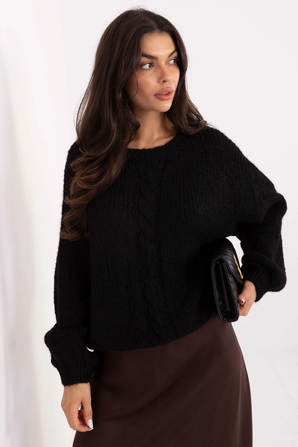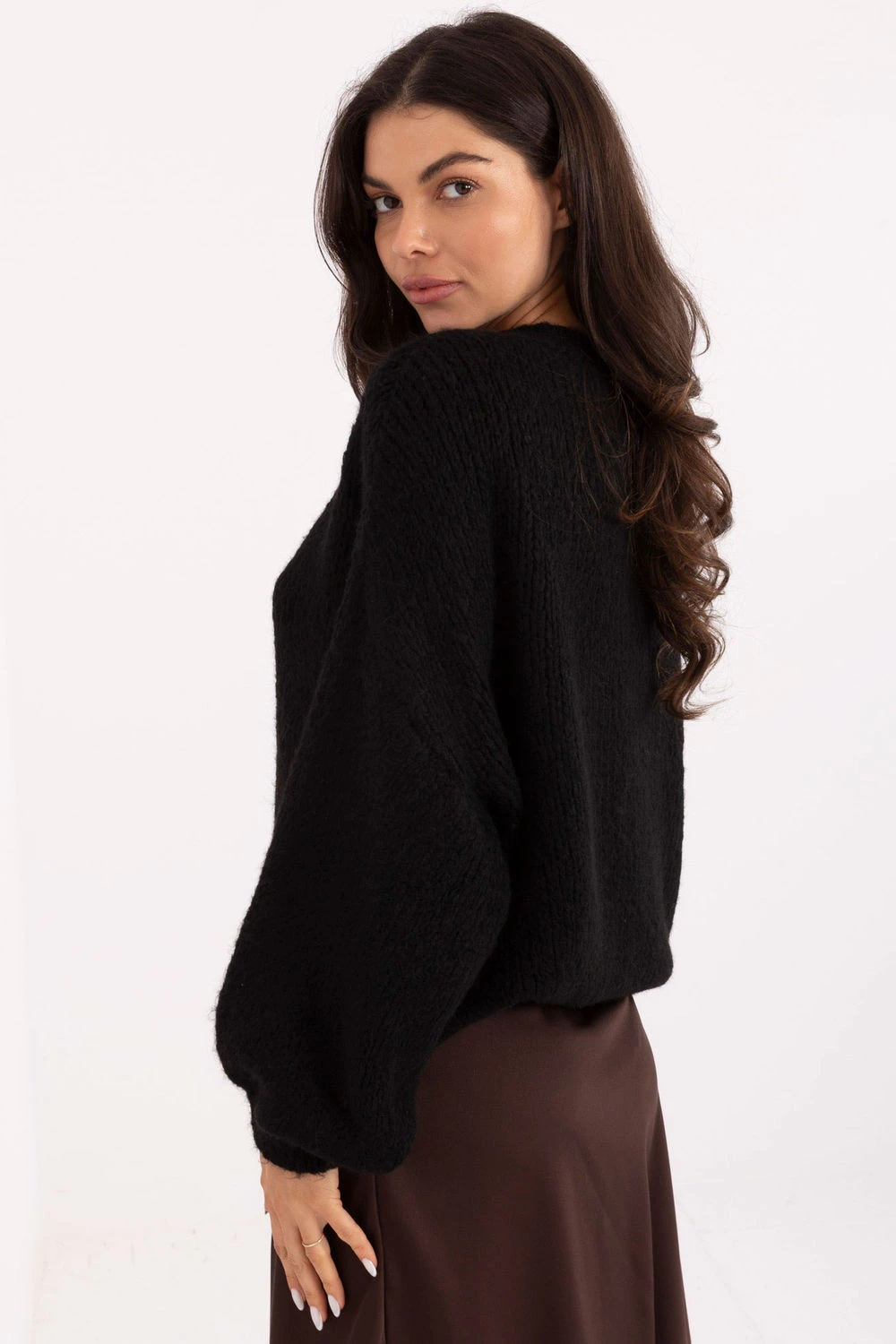 Volný dámský svetr je ideální volbou pro každodenní stylizace a do práce, když je důležitá pohodlí a módní, ležérní charakter. Jeho volný střih poskytuje pohodlné nošení a skvěle padne na postavě, nabízí mnoho možností stylizace. Model se vyznačuje různorodou texturou materiálu, která mu dodává výraznost a jedinečný charakter. Vyrobený z kombinace akrylu, vlny, viskózy a polyamidu, je měkký, příjemný na dotek a dostatečně teplý, ideální na chladnější dny. Svetr má standardní délku, dlouhý rukáv a kulatý výstřih, což zdůrazňuje jeho klasický, ale moderní tvar. Další výhodou jsou volné rukávy, které dodávají celku lehkou, módní eleganci. Model nemá zapínání, obléká se přes hlavu, což zdůrazňuje jeho ležérní charakter. Je to skvělý návrh pro ženy, které oceňují styl, pohodlí a decentně výrazné detaily.