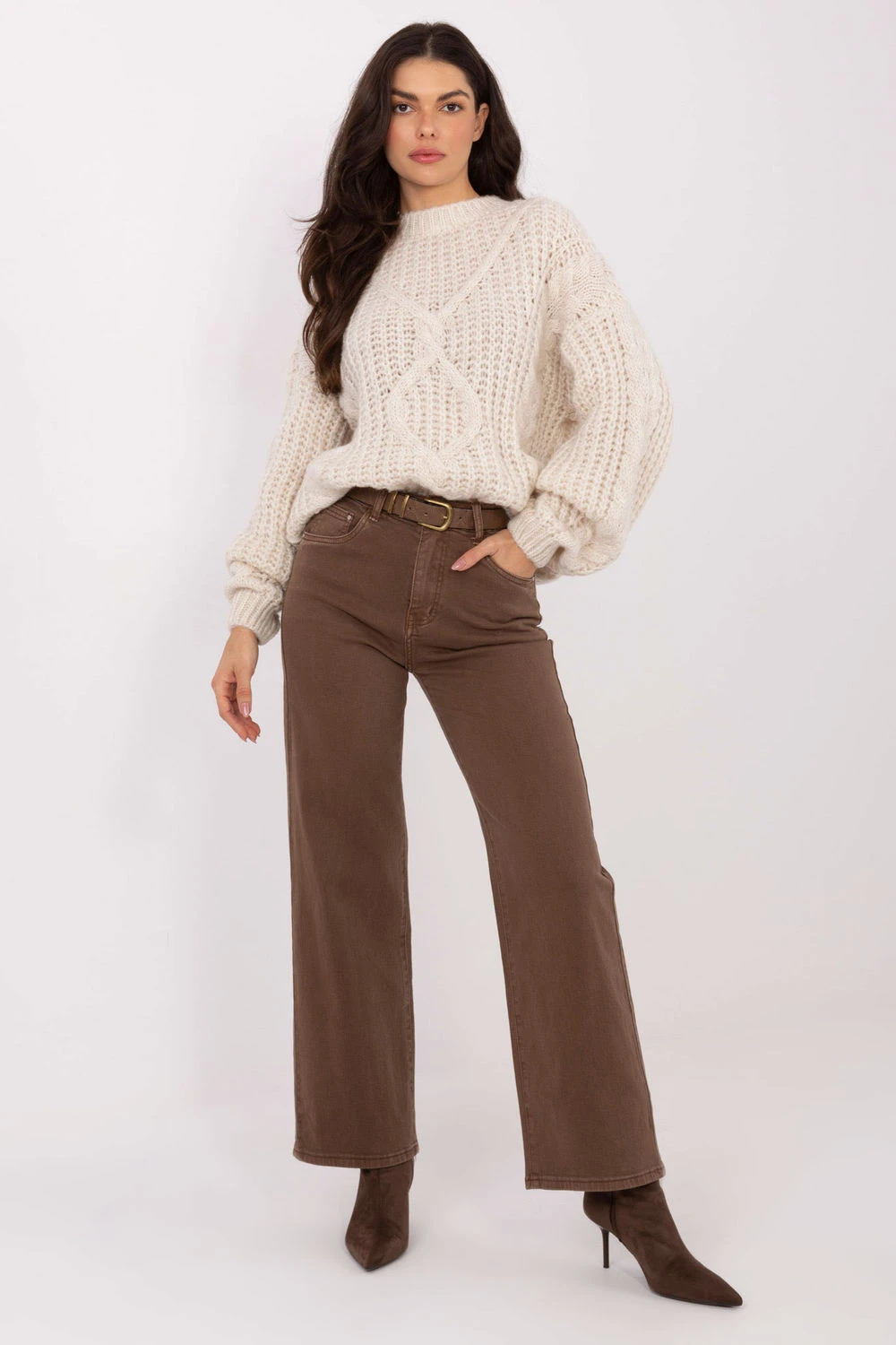 Volný dámský svetr navržený pro každodenní, neformální stylizace. Vyroben z příjemné směsi akrylu, nylonu a mohéru, poskytuje měkkost, lehkost a pohodlí po celý den. Model standardní délky a dlouhými rukávy se vyznačuje pestrou fakturou materiálu, která tvoří jeho hlavní, dominující akcent. Kulatý výstřih dodává klasický charakter a nafouklé rukávy dodávají celku moderní, ženský výraz. Svetr nemá zapínání, což ho činí mimořádně pohodlným a snadným na stylizaci. Ideální volba pro ženy, které ocení volnost, jemné tkaniny a stylové detaily ve svém každodenním oblečení.