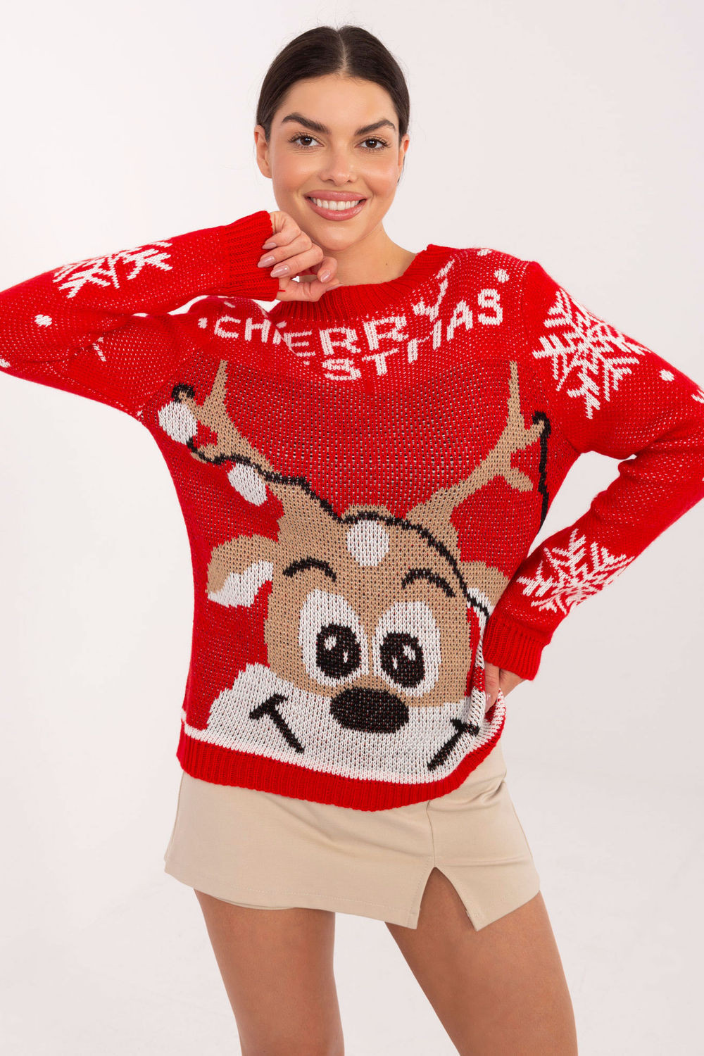 Dámský svetr v casual stylu je skvělou volbou pro každodenní, návštěvní a volný večírky v příjemné vánoční atmosféře. Vyroben z měkkého akrylu poskytuje pohodlí a příjemné teplo po celý den. Model standardní délky s dlouhým rukávem a kulatým výstřihem je pohodlný a snadno se stylizuje. Potisk a nápisy na přední straně, stejně jako vločky na zádech a rukávech, dodávají svetru výjimečný sezónní charakter, ideální na vánoční a zimní setkání. Svetr nemá zapínání, co usnadňuje rychlé oblékání a vrstvení stylizací. Stylový, teplý a plný šarmu, skvělý pro vánoční, casual a večírkové příležitosti.