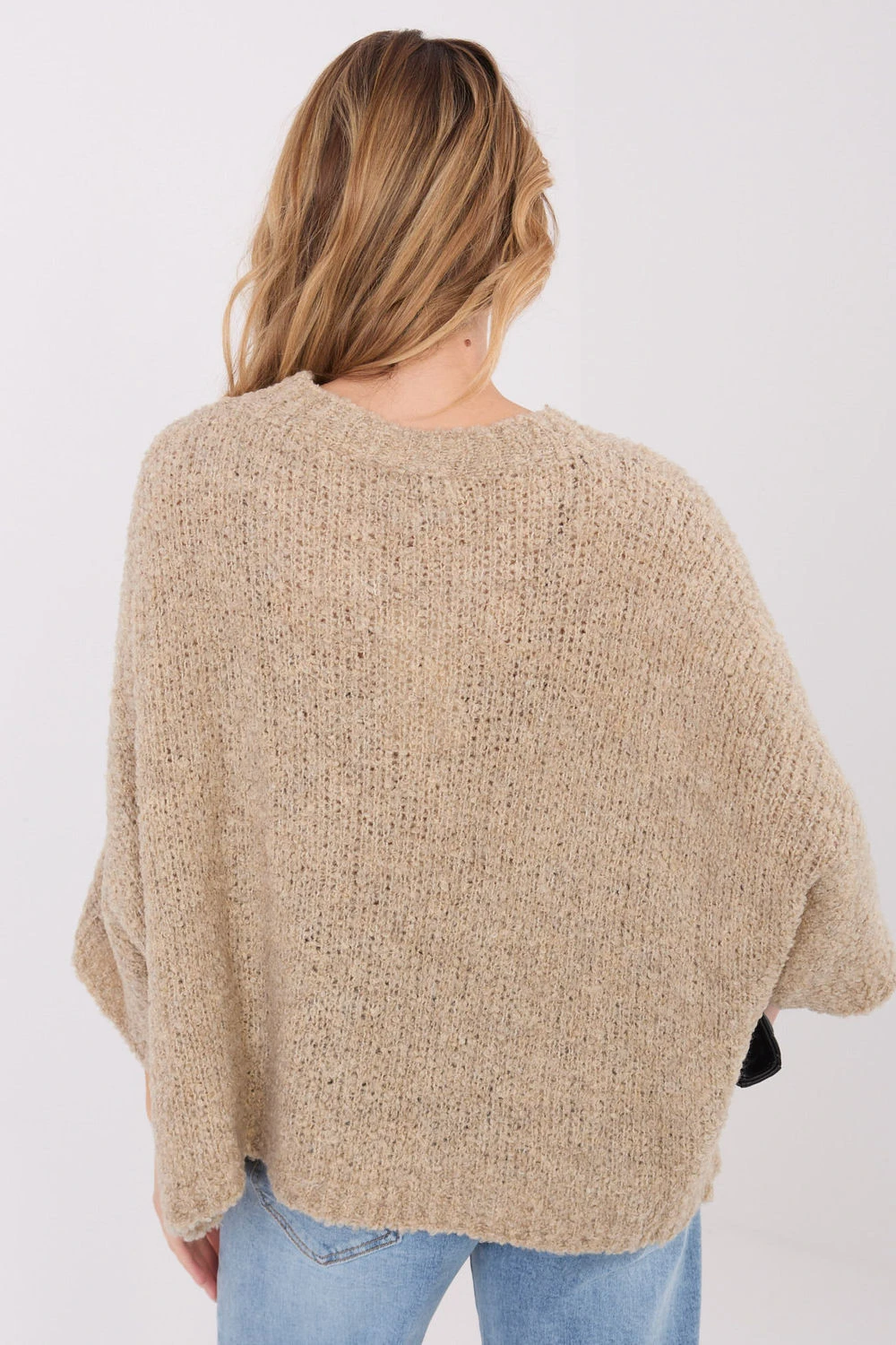Ten volný dámský svetr typu boucle je ideální volbou pro každodenní, ležérní stylizace. Vyrobený z směsi akrylu, polyamidu, viskózy a vlny, okouzluje měkkou, příjemnou strukturou a pohodlným nošením. Hladký materiál a charakteristická faktura boucle mu dodávají módní, lehce nadýchaný vzhled. Model střední délky má pohodlný 3/4 rukáv a kulatý výstřih, který mu dodává klasickou jednoduchost. Svetr nemá zapínání, což ho činí skvělým lehkým vrstvením na chladnější dny. Jedná se o univerzální kousek šatníku, který snadno doplní každodenní outfit s džíny, látkovými kalhotami nebo sukní.