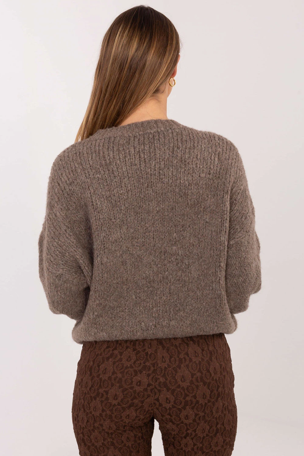 Elegantní dámský svetr s ležérním charakterem je ideální volbou na každý den. Vyrobený z měkké směsi akrylu, vlny, viskózy a polyamidu poskytuje pohodlí, teplo a potěšení z nošení po celý den. Model s standardní délkou a kulatým výstřihem skvěle ladí jak s džíny, tak s elegantní sukní. Bubnovité rukávy mu přidávají jemnou ženskost a moderní vzhled. Hladká faktura a absenci zapínání činí z tohoto kusu univerzální kousek šatníku, ideálního pro každodenní, nezávazné stylizace.
