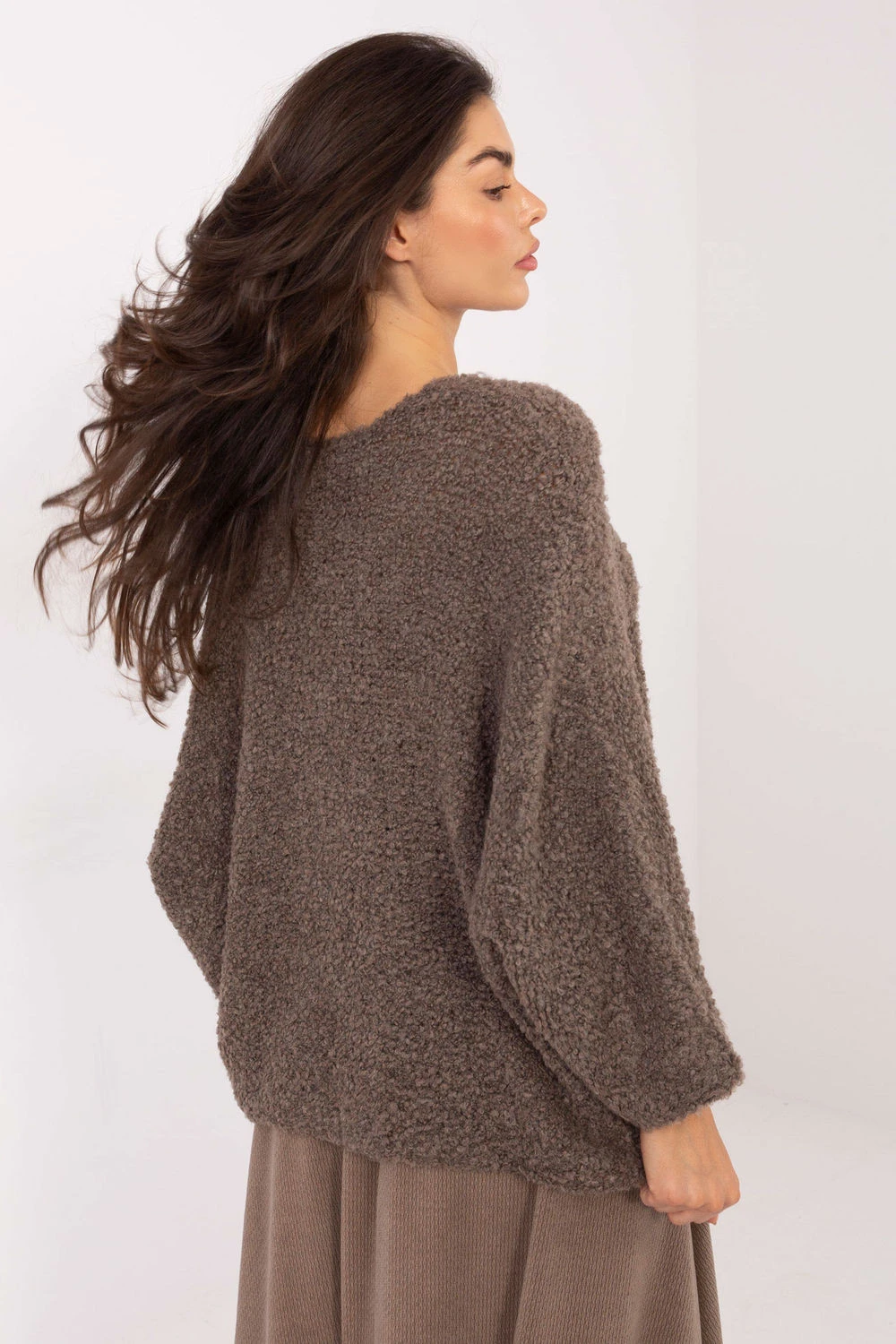 Dámský svetr boucle je stylový a pohodlný návrh pro každodenní outfit. Vyrobený z příjemné směsi akrylu, viskózy, vlny a polyamidu poskytuje pohodlí, teplo a odolnost. Charakteristická smyčková struktura materiálu mu dodává moderní a útulný charakter. Model s standardní délkou a dlouhým volným rukávem vypadá moderně a žensky. Výstřih do šípku jemně zdůrazňuje krk a opticky zúžuje postavu. Hladký vzor a absenci zapínání činí svetr univerzálním a snadno kombinovatelným, ideální na každý den, jak do džínů, tak ke sukni nebo elegantním kalhotám.
