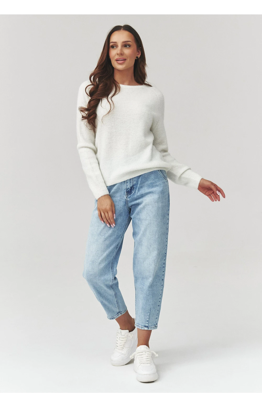 Stylový dámský svetr s kulatým výstřihem je ideální volbou pro ženy, které ocení kombinaci jednoduchosti, pohodlí a elegance. Vyrobený z měkké, příjemné na dotek příze, poskytuje pohodlí po celý den a skvěle se hodí do chladnějších dnů. Volný střih jemně obepíná postavu, zatímco jemně spuštěné ramena a široké rukávy dodávají celku módní, moderní charakter. Tento model skvěle vypadá jak v kombinaci s džíny, látkovými kalhotami, tak i s midi sukní, ideální do práce, školy nebo na setkání s přáteli. Dostupný v módních jarních barvách. Vyrobeno v Itálii.