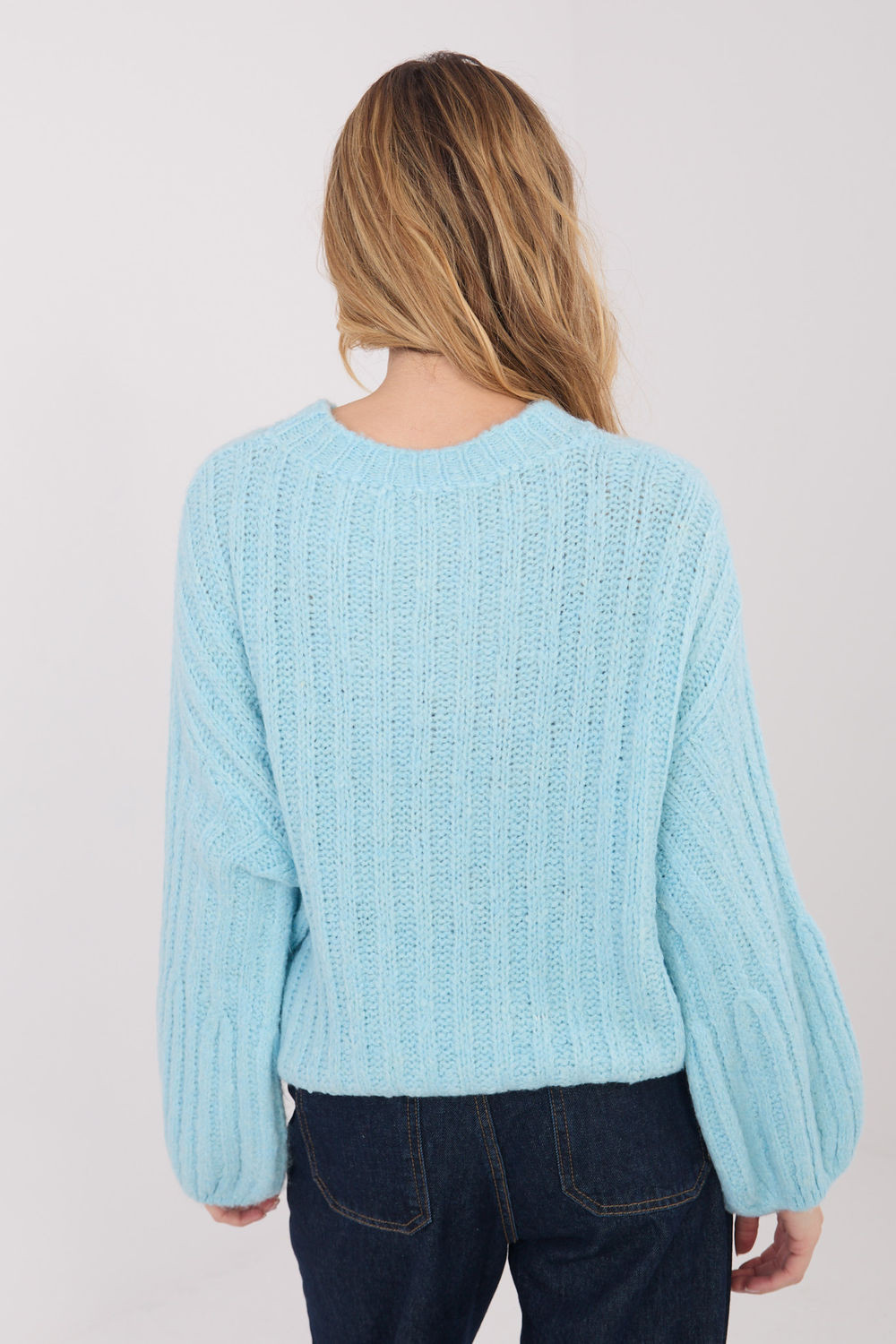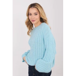 Dámský svetr s casualovým charakterem, vyrobený z materiálu s hrubým spicem, který se skvěle hodí na chladné dny. Model ideální na nošení každý den i do práce, kombinující pohodlí s klasickým stylem. Hladký vzor mu dodává univerzální vzhled, a proužkovaná struktura materiálu zdůrazňuje jeho moderní charakter. Svetr je vyroben z vysoce kvalitní směsi polyakrylu, polyamidu, viskózy a vlny, poskytuje teplotu, měkkost a pohodlí nošení. Standardní délka, kulatý výstřih a absenci zapínání vytvářejí nadčasový střih. Dlouhé, nadýchané rukávy dodávají celku ženského šarmu a originality, činí ze svetru stylový prvek každodenních stylizací.