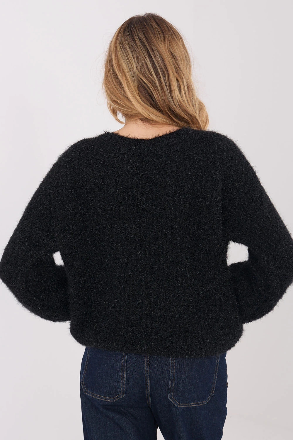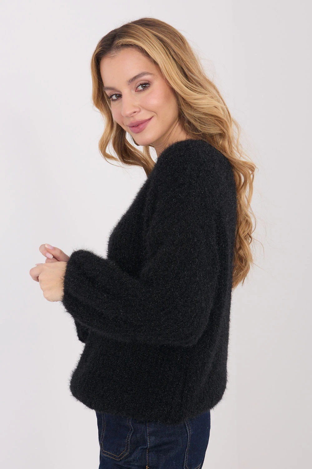 Dámský svetr s casual charakterem, ideální pro každodenní stylizace a do práce. Model vyrobený z měkké a příjemné směsi akrylu, moheru a vlny, která poskytuje teplo a pohodlí nošení. Hladký vzor dodává svetru univerzální a nadčasový vzhled. Standardní délka, klasický kulatý výstřih a absenci zapínání dělají svetr pohodlný a snadno stylizovatelný. Dlouhé nafouklé rukávy přidávají celku ženského šarmu a módního charakteru, jemně vyzdvihují model na pozadí klasických střihů.