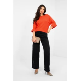 Elegantní dámský svetr standardní délky, ideální jak na každý den, tak i na speciální příležitosti. Vyrobený z vysoce kvalitní směsi viskózy, polyesteru a nylonu, poskytuje pohodlí a odolnost. Hladký vzor dodává nadčasový charakter, zatímco jemné detaily přidávají ženský půvab. Model je doplněn okrouhlým výstřihem a rukávy 3/4 zakončenými jemným volánem, které zdůrazňují eleganci a lehkost outfitu. Skvělá volba pro ženy, které ocení klasiku v moderním provedení.