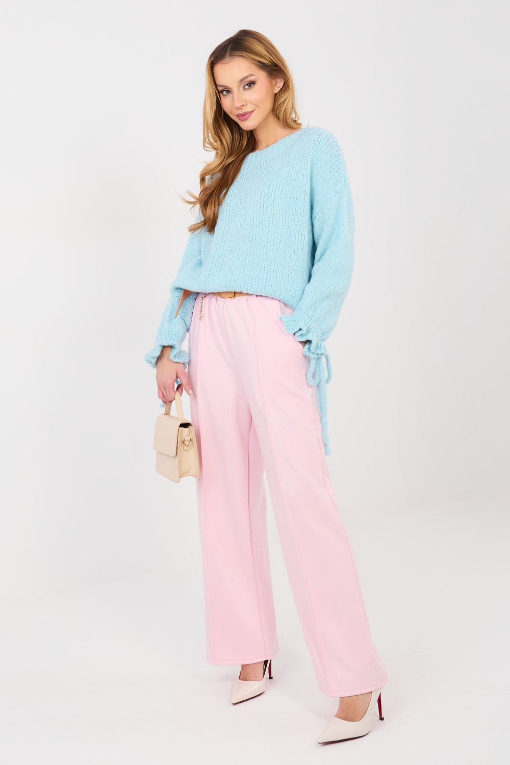 Dámský svetr s volným střihem, ideální pro každodenní módu a práci. Model má standardní délku a je vyroben z měkké a příjemné směsi akrylu, polyamidu, viskózy a vlny, která zaručuje pohodlí a teplo. Hladký vzor dodává svetru univerzální vzhled, díky čemuž je snadné sladit s různými kousky šatníku. Klasický kulatý výstřih a dlouhé rukávy zdůrazňují nadčasový střih. Ozdobné volány s mašlí na rukávech dodávají celku ženský šarm a jemnou originalitu. Svetr nemá zapínání, co zajišťuje pohodlí a volnost nošení.