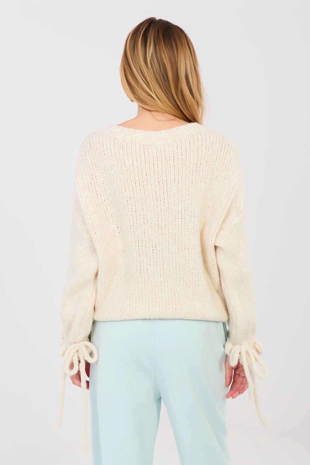 Dámský svetr s casual charakterem, ideální pro každodenní stylizace a práci. Model standardní délky, vyrobený z měkké a příjemné směsi akrylu, polyamidu, viskózy a vlny, která poskytuje pohodlí a teplo. Hladký vzor dodává svetru univerzální vzhled, díky čemuž je snadné ho kombinovat s různými kousky oblečení. Klasický, kulatý výstřih a dlouhé rukávy zdůrazňují nadčasový střih. Ozdobné volánky se šněrováním u rukávů dodávají celku ženský šarm a jemnou originalitu. Svetr nemá zapínání, což zajišťuje pohodlí a volnost pohybu.