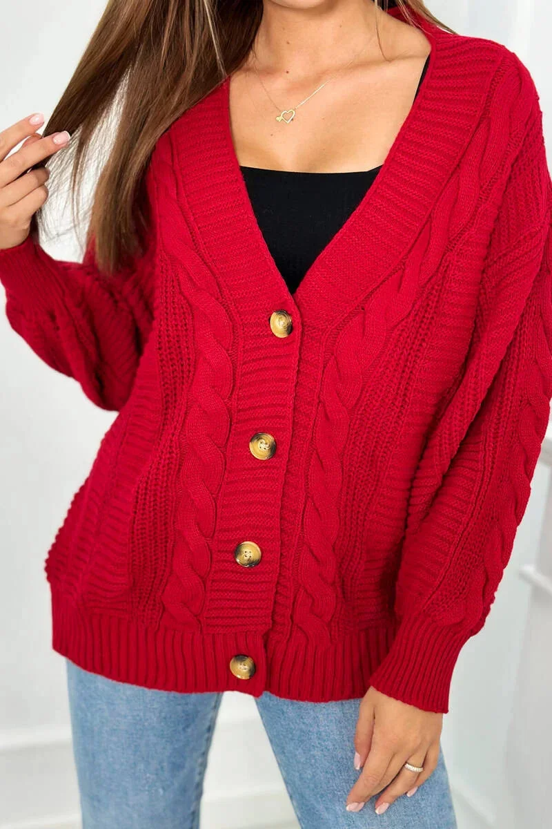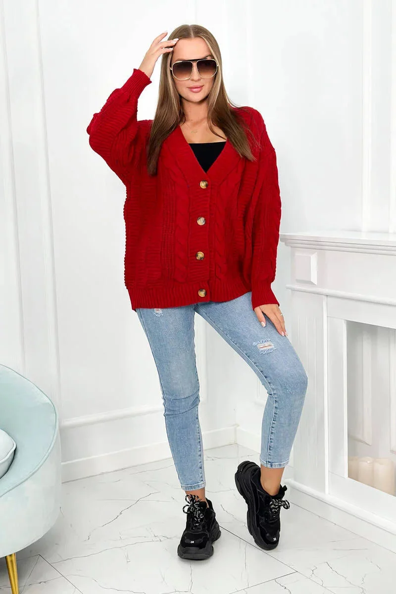 Svetr na knoflíky model 20774210 červený - Kesi