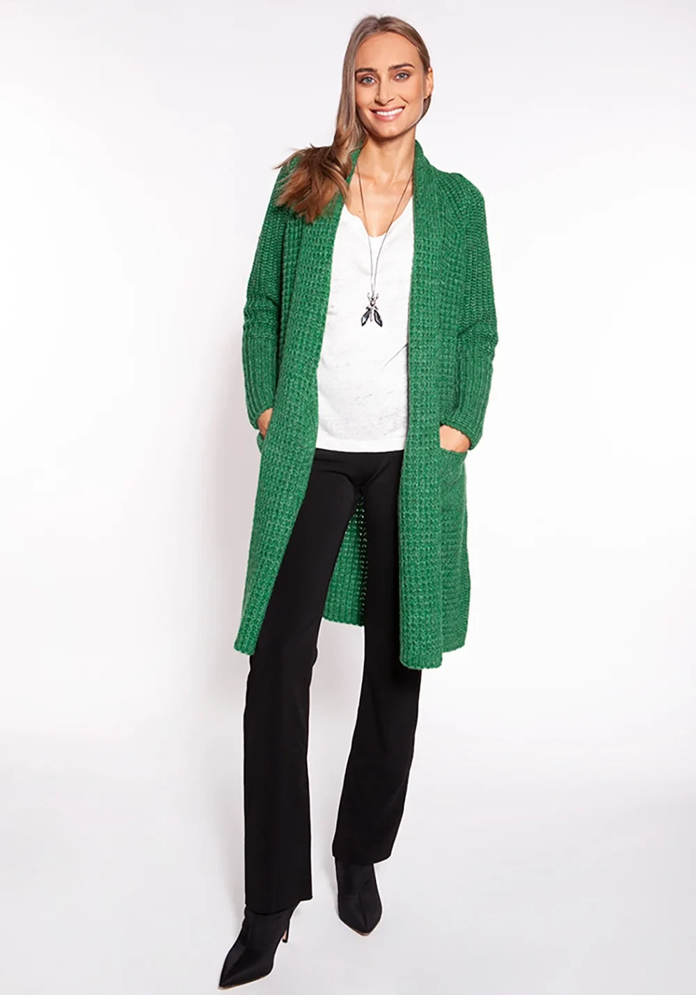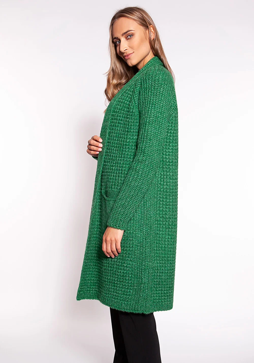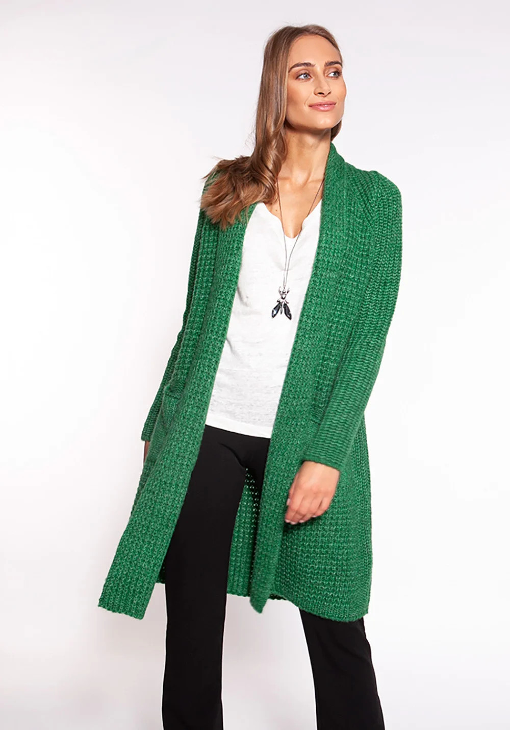 Tento elegantní kardigan v délce do boků je ideální volbou pro běžné i formálnější příležitosti. Svetr má kulatý výstřih, který mu dodává klasický šarm. Žebrované manžety navíc zajišťují dokonalé přizpůsobení. Jedinečné ozdobné vazby dodávají svetru zvláštní nádech.