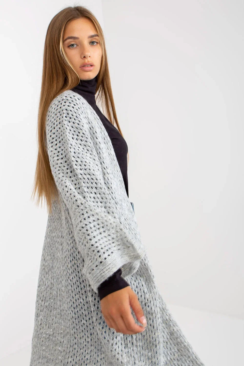 Svetr s dlouhým rukávem bez zapínání. Svetr s prolamovaným vzorem.