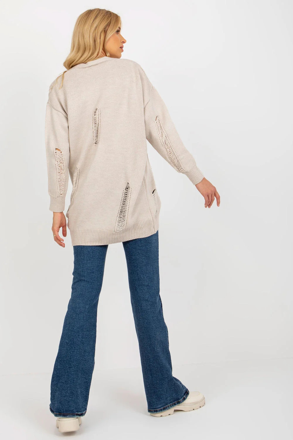 Kardigan s dlouhými rukávy a knoflíky. Svetr se srdíčkovým výstřihem a ozdobnými otvory.