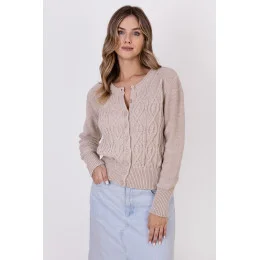 Tento elegantní kardigan v délce do boků je ideální volbou pro běžné i formálnější příležitosti. Svetr má kulatý výstřih, který mu dodává klasický šarm. Žebrované manžety navíc zajišťují dokonalé přizpůsobení. Jedinečné ozdobné vazby dodávají svetru zvláštní nádech.