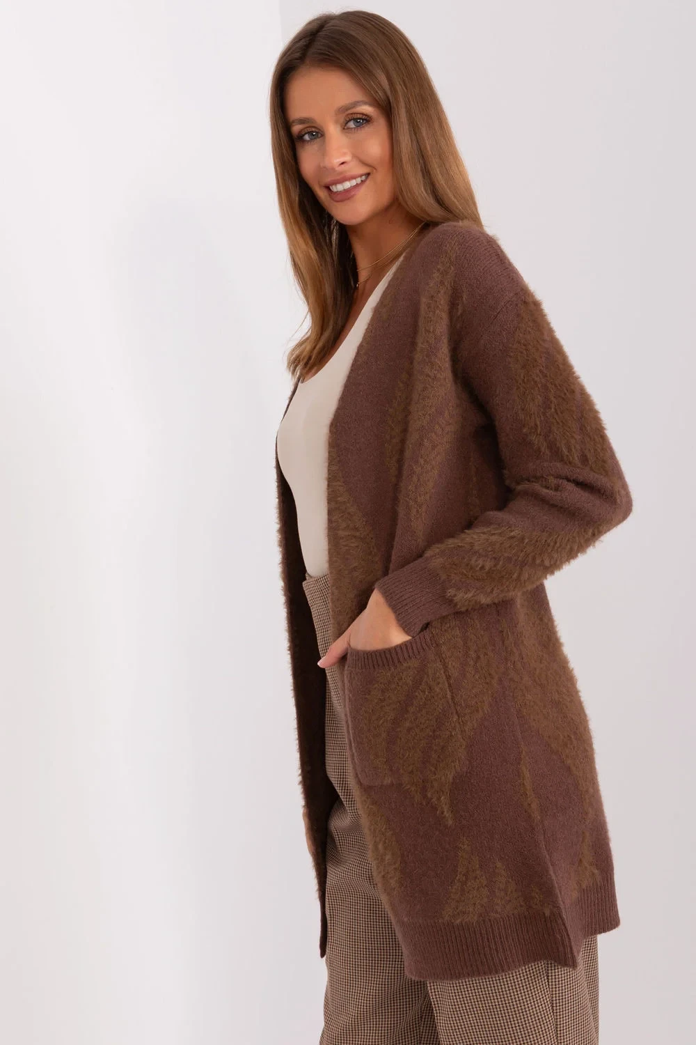 Tento svetr s přehozem je dokonalým kouskem do šatníku pro každodenní nošení. Je vyroben z pestré tkaniny, je pohodlný a módní. Dlouhý rukáv a délka sahající přes boky zajišťují teplo a pohodlí. Je to ideální kousek, který přes sebe můžete přehodit v chladnějších dnech nebo večer. Kardigan nemá zapínání, což mu dodává na ležérnosti a volnosti při nošení. Praktickým prvkem jsou navíc nakládané kapsy, do kterých si můžete uložit drobnosti nebo zahřát ruce. Je to pohodlná a módní volba, která doplní mnoho každodenních vzhledů.