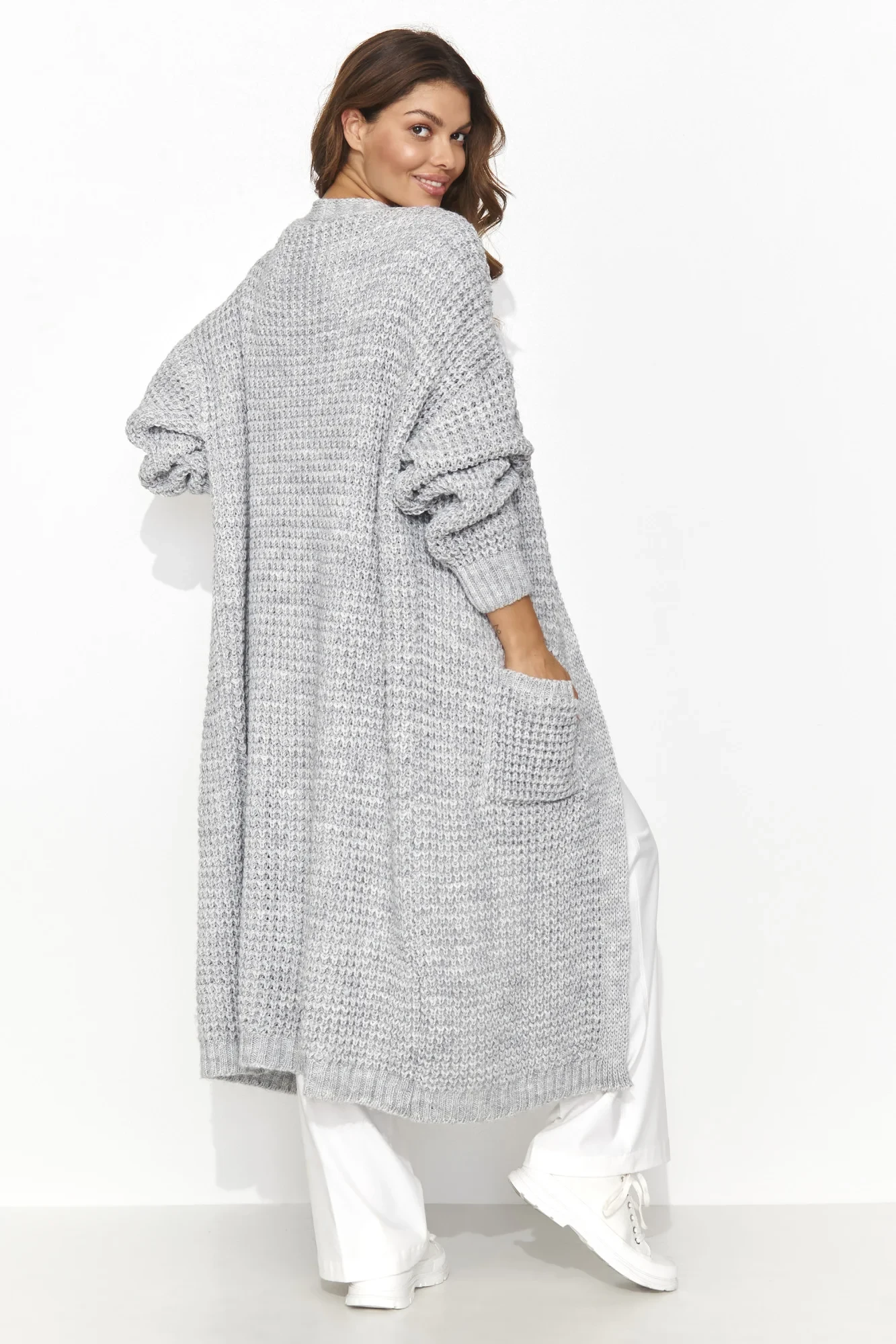 Lehký dámský otevřený svetr, který je ideální pro celoroční nošení. Má dvě praktické kapsy na přední straně a je funkční i stylový. Jeho délka pod kolena mu dodává na eleganci. Dámský svetr bez knoflíků se dodává ve čtyřech klasických odstínech, takže je univerzální a snadno se kombinuje s mnoha zajímavými styly. Je ideální pro chladnější večery nebo větrné dny a představuje dokonalý doplněk šatníku pro ženy, které ocení pohodlí a nadčasovou eleganci. Oblečte si ji do práce nebo v ní strávte aktivní víkend mimo město.
