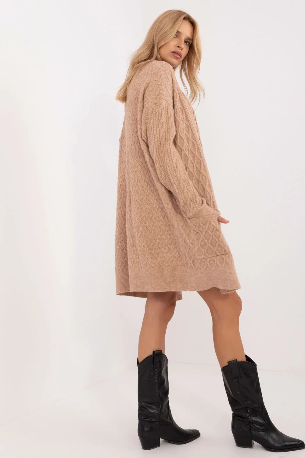 Dlouhý kardigan bez zapínání je ideální vrstva na každý den, která kombinuje casual styl s pohodlím. Vyroben z akrylové, polyesterové a polyamidové směsi poskytuje teplo a pohodlí, zatímco zůstává lehký a příjemný na dotek. Různorodá faktura materiálu mu dodává výjimečný charakter, což ho činí nejen praktickým, ale také stylovým. Kardigan má dlouhé rukávy a vkládané kapsy, které zvyšují jeho funkčnost. Jeho dlouhý tvar se perfektně hodí do chladnějších dnů, ideálně se hodící k casual stylizacím na každý den. Je to univerzální kus šatníku, který skvěle doplní každý outfit, dodávajíc mu elegantní volnost.